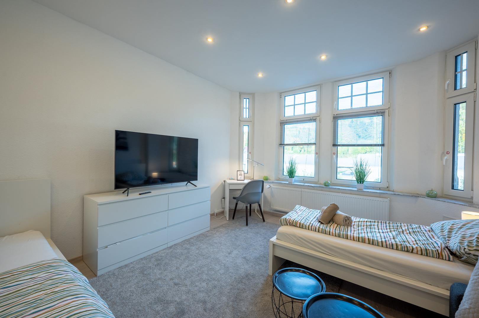 Dieses großzügige Apartment in Hagen-Eilpe bietet Platz für Gruppen, Monteurteams oder Familien – mit flexibler Schlafaufteilung und Balkon zum Entspannen.