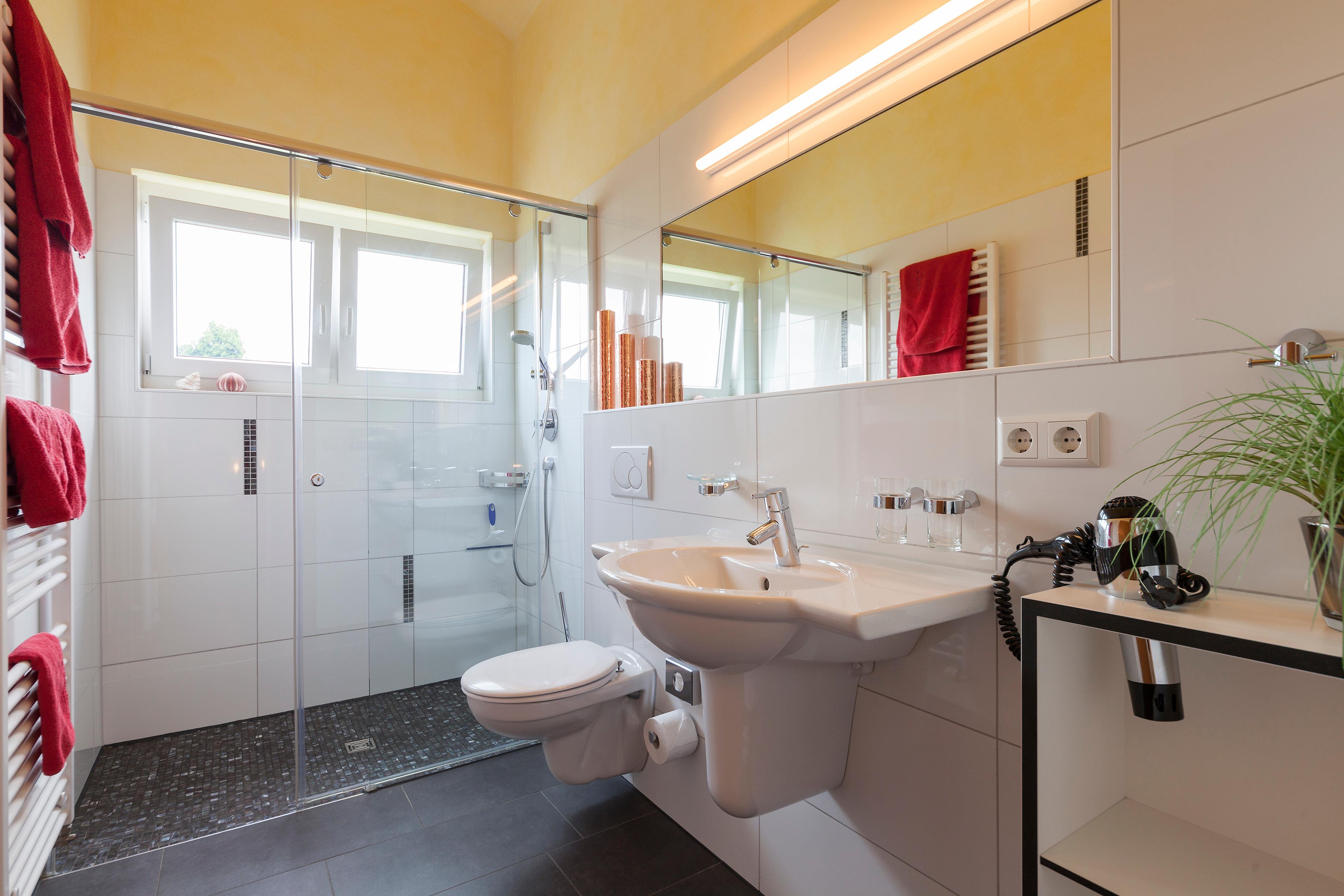 - begehbare Glasdusche, WC, Fön