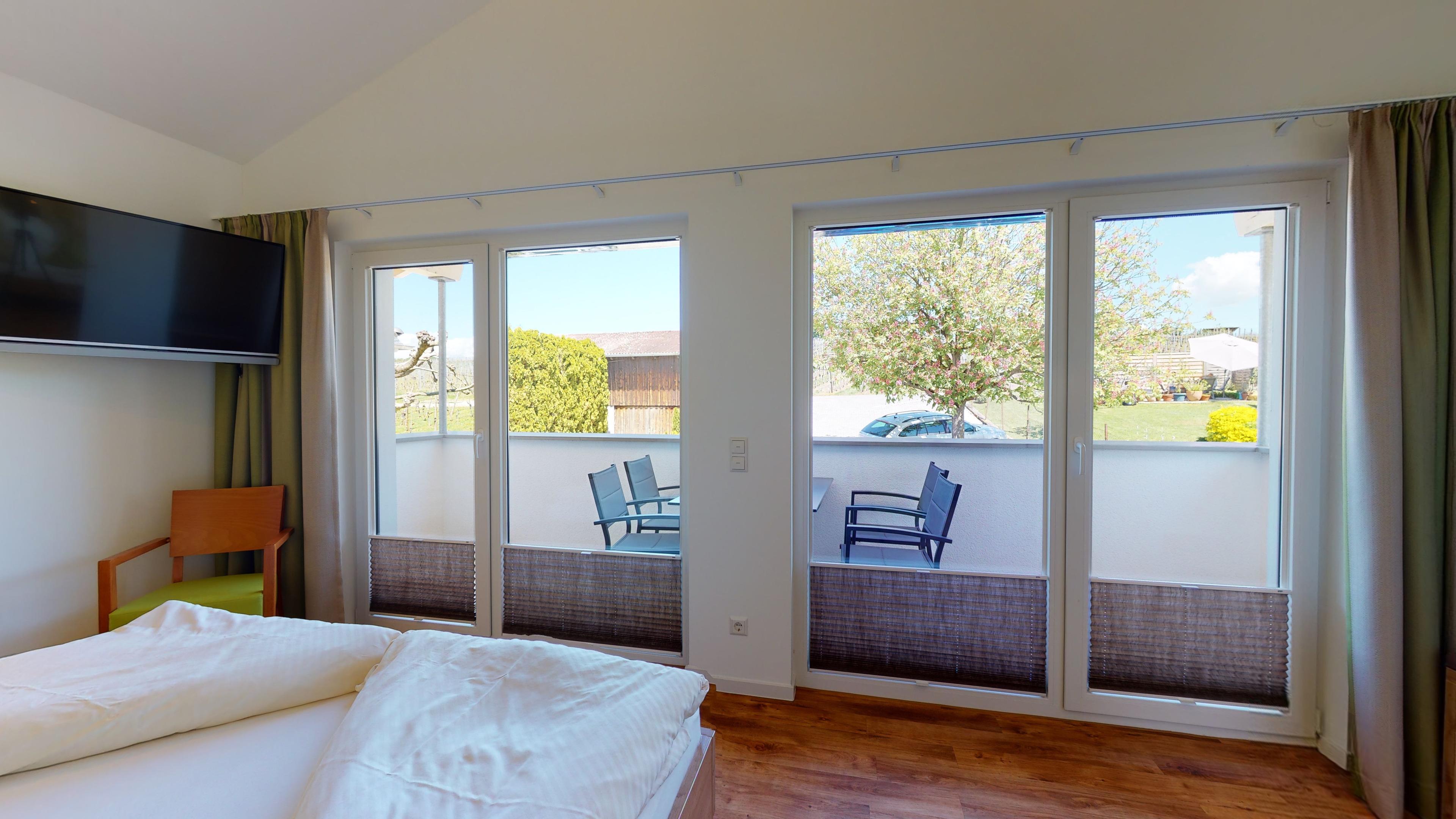 Die Ferienwohnung befindet sich im Obergeschoss mit Blick zu unseren Weinbergen.