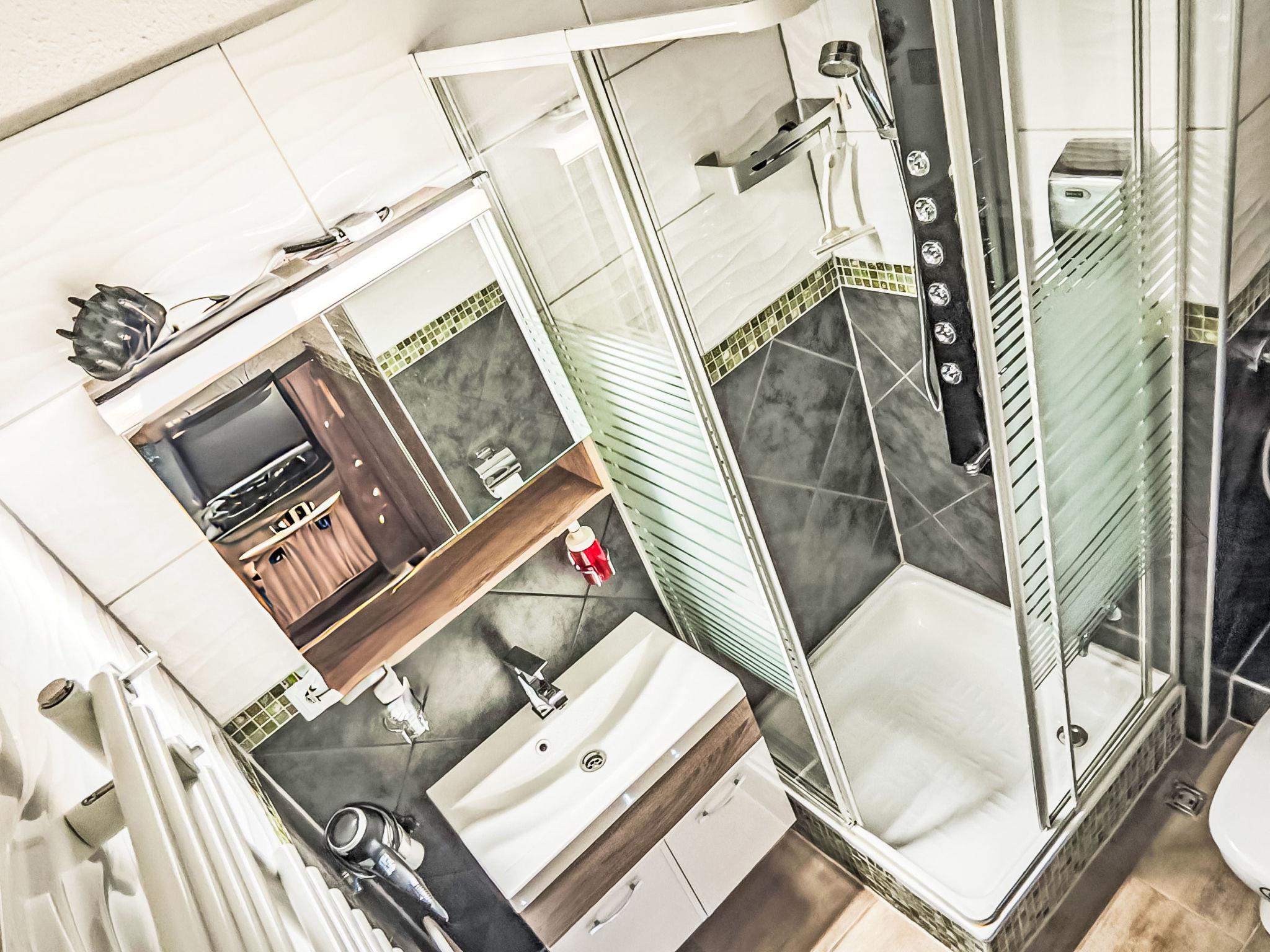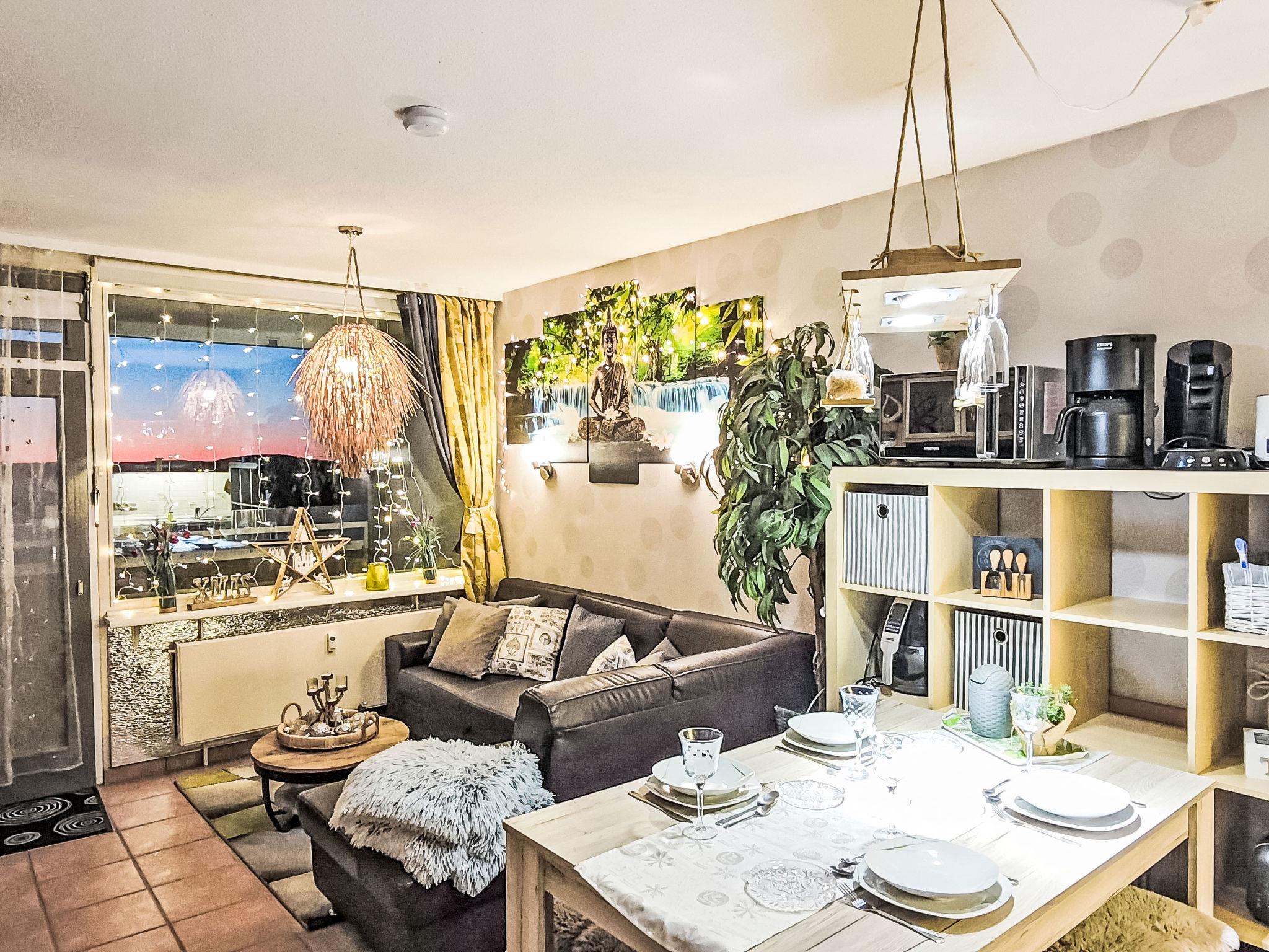 "Bocksbergperle 3", 3-room apartment 39 m2 on 7th floor. Renovated in 2022, practical and cosy furnishings: living/dining room with satellite TV (flat screen). Exit to the balcony. 1 room with 2 beds (100 cm, length 200 cm). 1 room with 1 bed (120 cm, length 190 cm). (2 ceramic glass hob hotplates, toaster, kettle, microwave, electric coffee machine). Shower/WC. Gas heating. Balcony 6 m2. Balcony furniture. Facilities: hair dryer. Internet (WiFi, free). Parking at 100 m. Please note: non-smokers only. Maximum 1 pet/ dog allowed. Smoke alarm, fire extinguisher.
