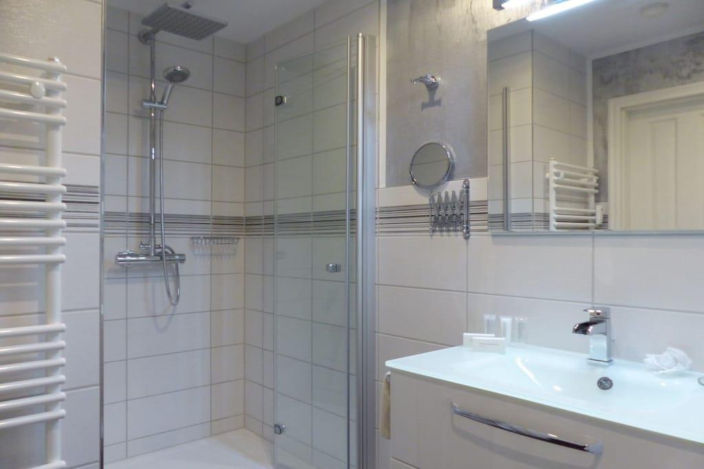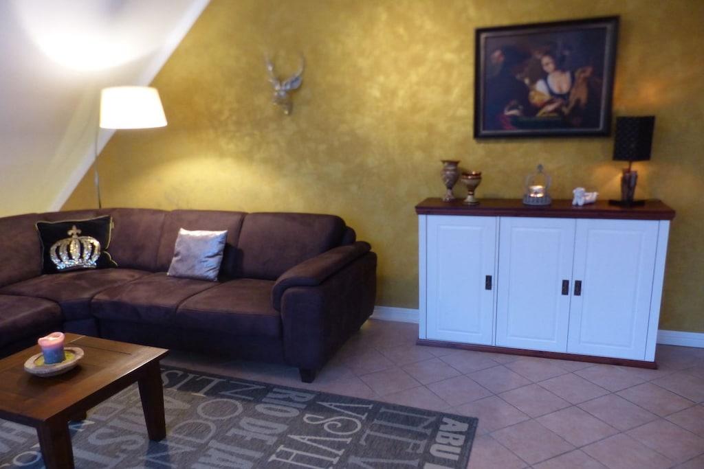 Diese excl., vollausgestattete Luxus Ferienwohnung mit 5 Sterne Klassifizierung, zeichnet sich durch die mod. und doch klassische Ausstattung aus. Wir haben bei der Auswahl der Einrichtung viel Liebe ins Detail gesteckt. Die Ferienwohnung verfügt über ein top Duschbad, eine neue Einbauküche, sowie mod. Ausstattung wie Flachbildschirme 47"im Wohn-u.Schlafzi., kostenl. WLAN, Blu Ray Player, Stereo-Anlage mit Bluetooth, USB u. CD, schnurl. Telefone, Geschirrspüler, Tassimo- u. Kaffeemaschine uvm. Besondere Highlights sind das sehr hochwertige Boxspringbett und die 1m x 1m große Regendusche. Die Steckdosen sind mit integrierter Kindersicherung versehen. Für den Umweltschutz sind alle Lampen mit Warmlicht LED Technik ausgestattet.