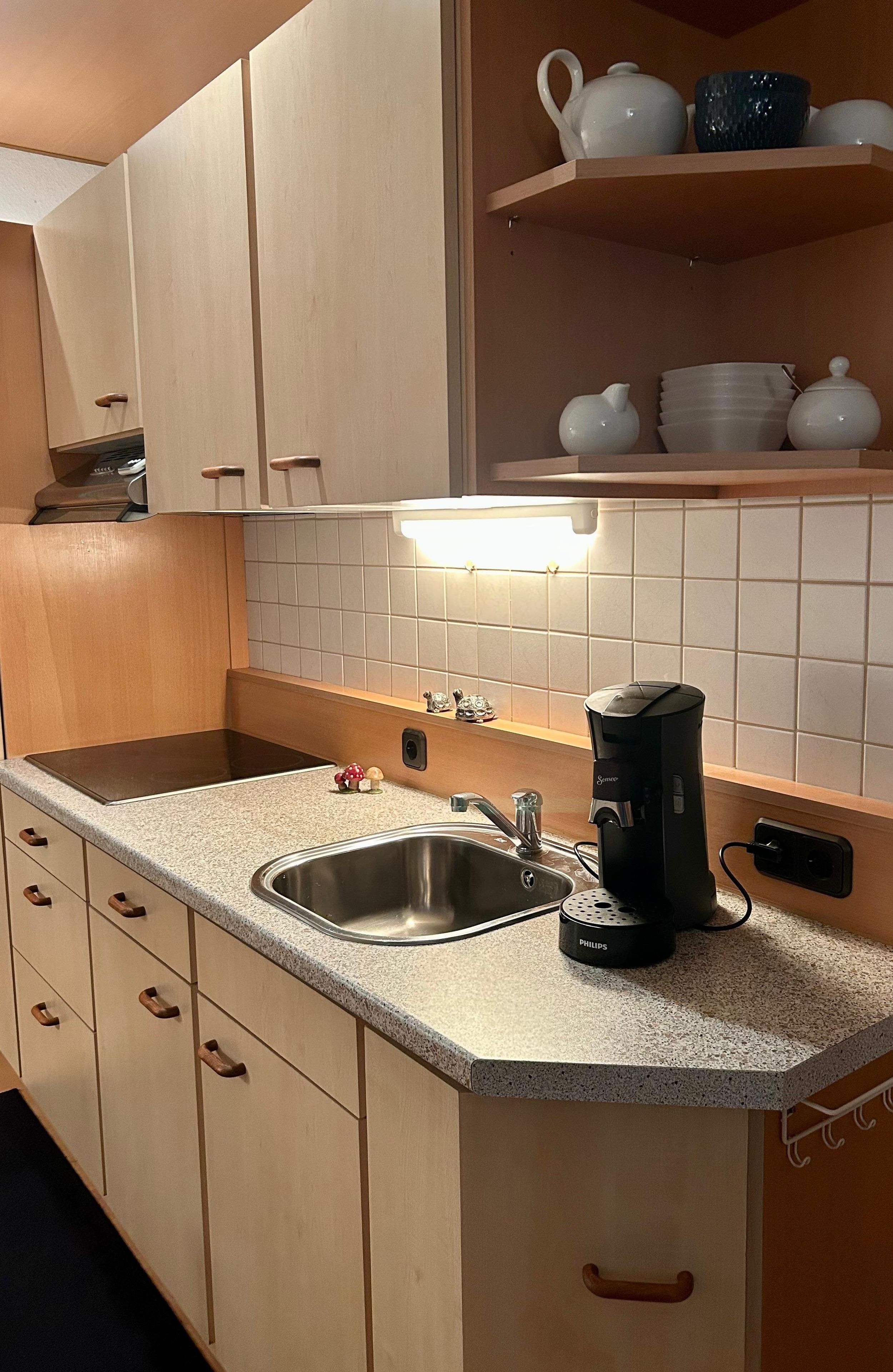 Die gemütlich eingerichtete Ferienwohnung ist hell und lädt zu einem schönen Urlaub ein. Von modernen Lampen bis zu gemütlichen Betten lässt die Wohnung kaum Wünsche offen. Im Wohnzimmer befindet sich neben einer Sofagarnitur der Flachbildfernseher. Das bequeme Esszimmer und die vollausgestattete Küche runden das Angebot ab.