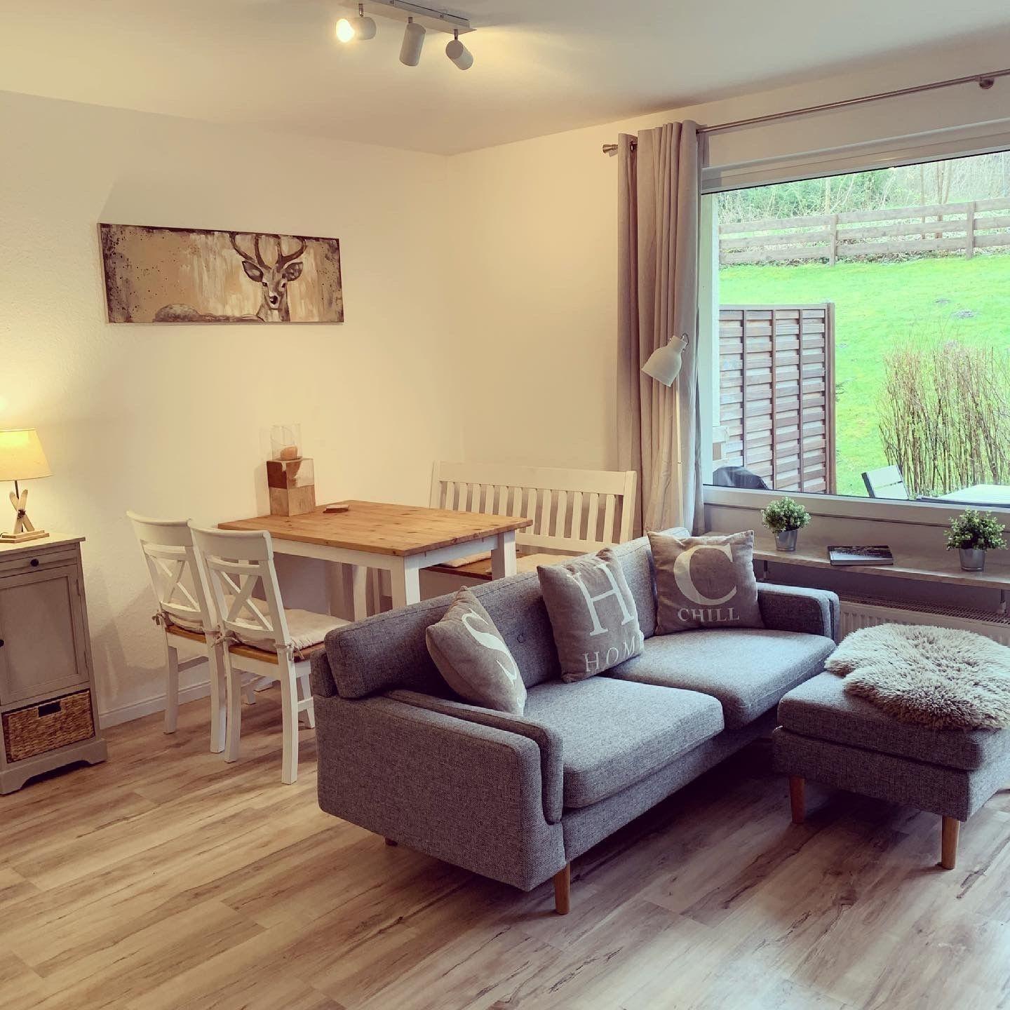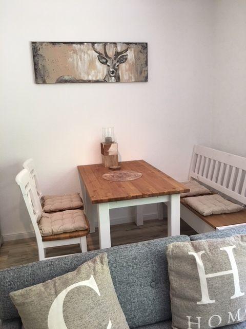 In das Wohn- und Esszimmer ist eine Küchenzeile integriert, ein Essplatz für 4 Personen und ein gemütliches Sofa laden zum gemeinsamen Beisammensein ein.
