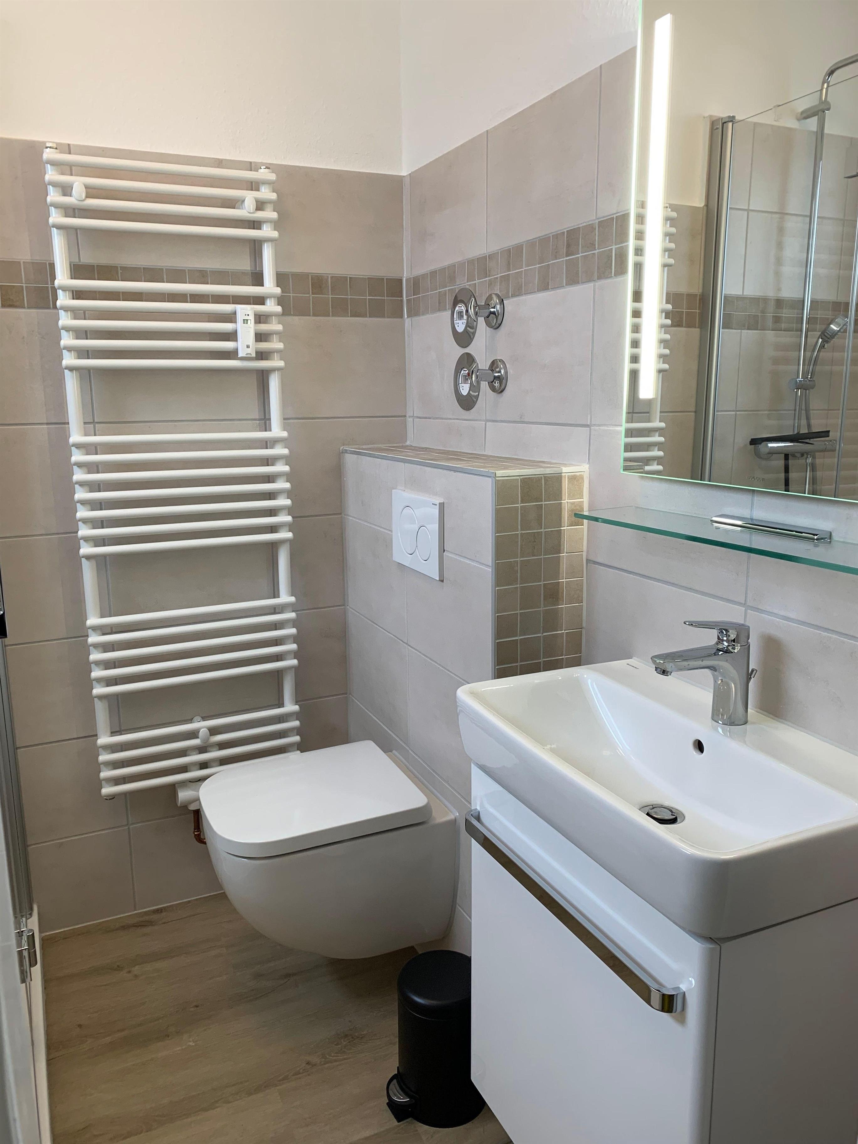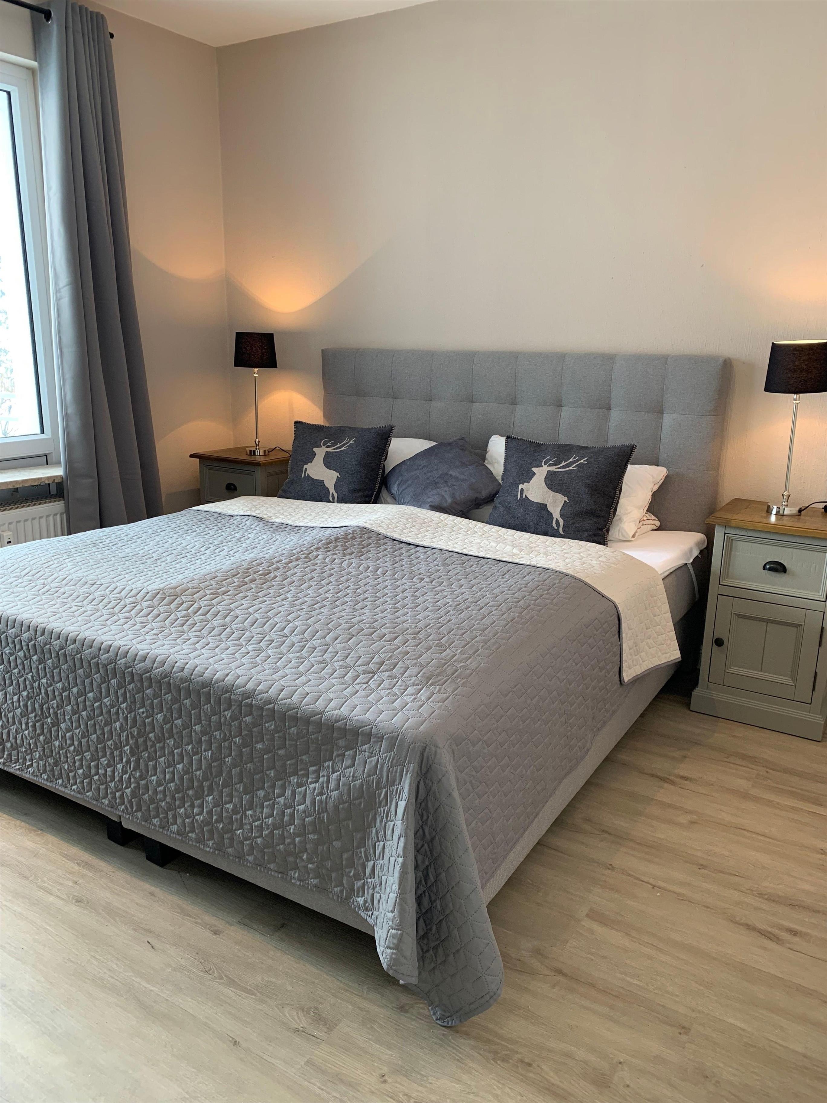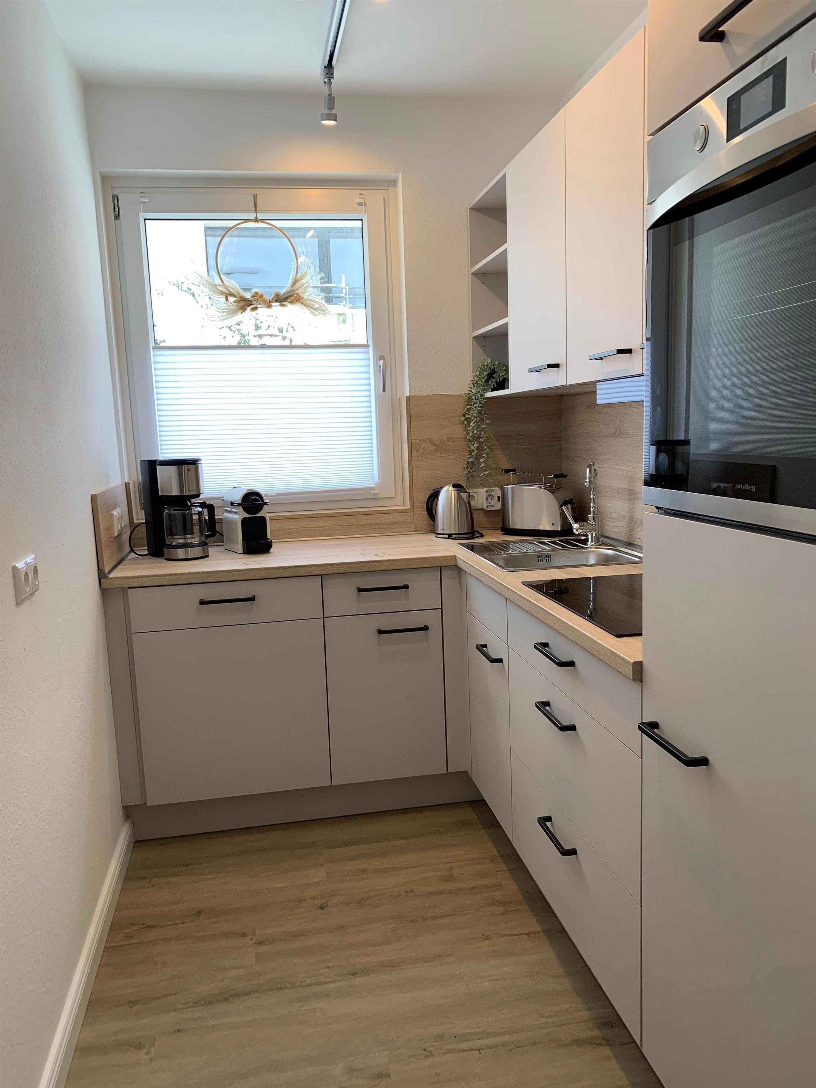 Diese neue EG-Wohnung verfügt auf 62 qm über einen großzügigen Wohn- und Essbereich, ein Schlafzimmer mit Boxspringbett (180x200 cm), eine separate Küche und ein helles Duschbad mit Fenster. Eine schöne eingezäunte Terrasse runden diese Einheit ab.