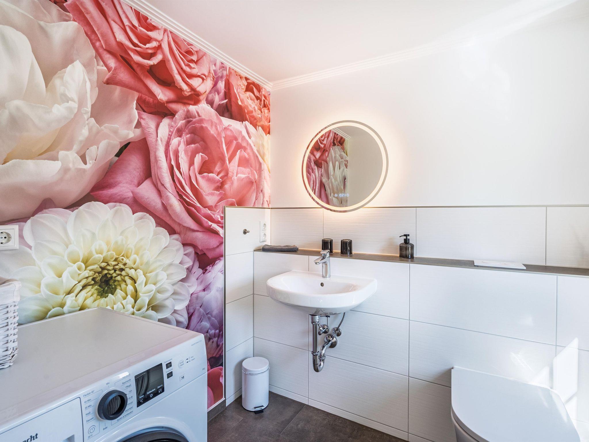 Die ca. 74 m² große erstklassig gepflegte Wohnung hat einen separaten Eingang, ein Schlafzimmer mit WC und einer Waschmaschine, ein Badezimmer sowie ein geräumiges Wohnzimmer mit moderner offene Küche. Die Wohnung bietet Schlafplatz für bis zu 4 Personen. Dafür können das Doppelbett, ein Schlafsessel und das Boxspringsofa im Wohnzimmer genutzt werden.