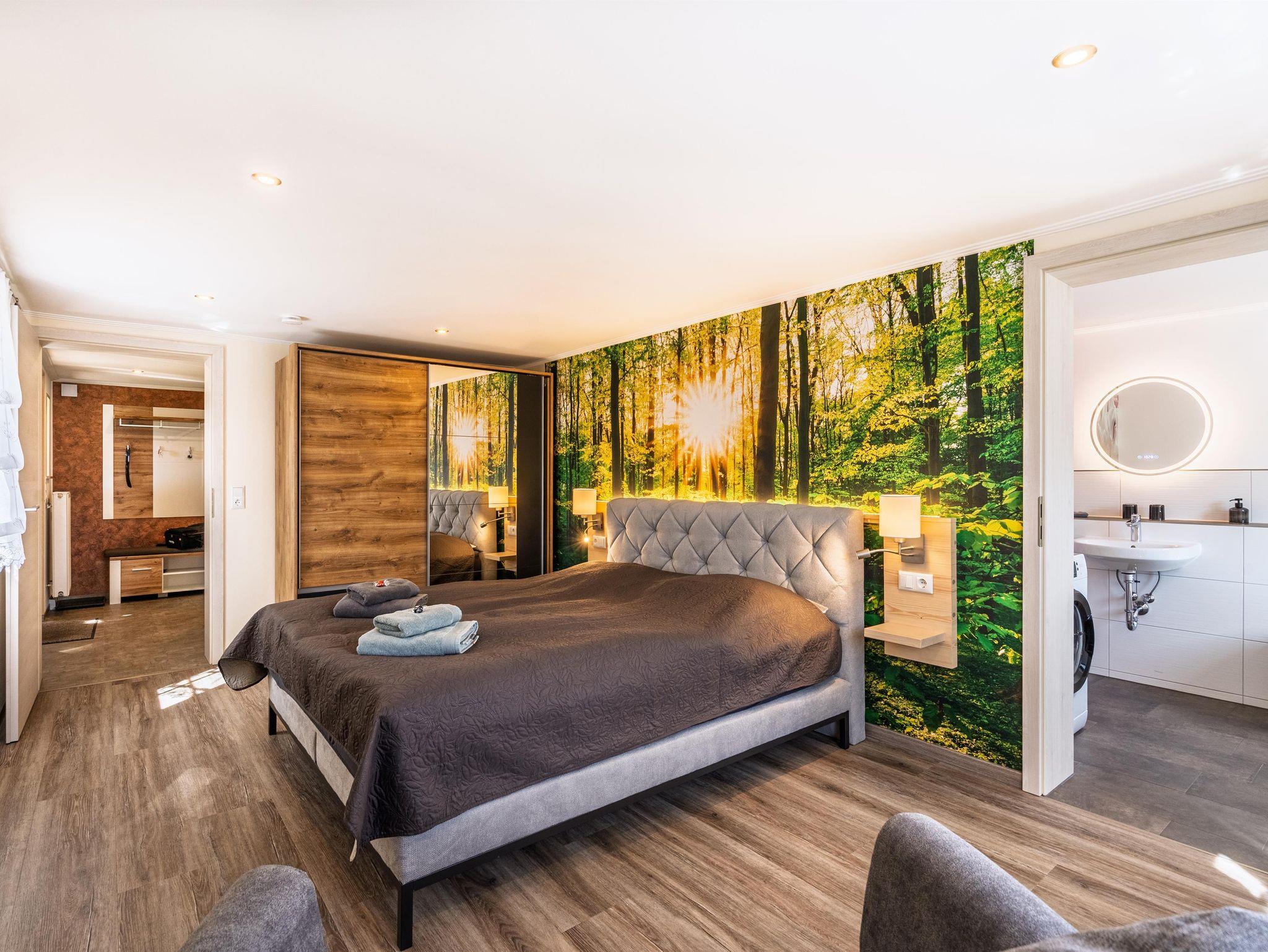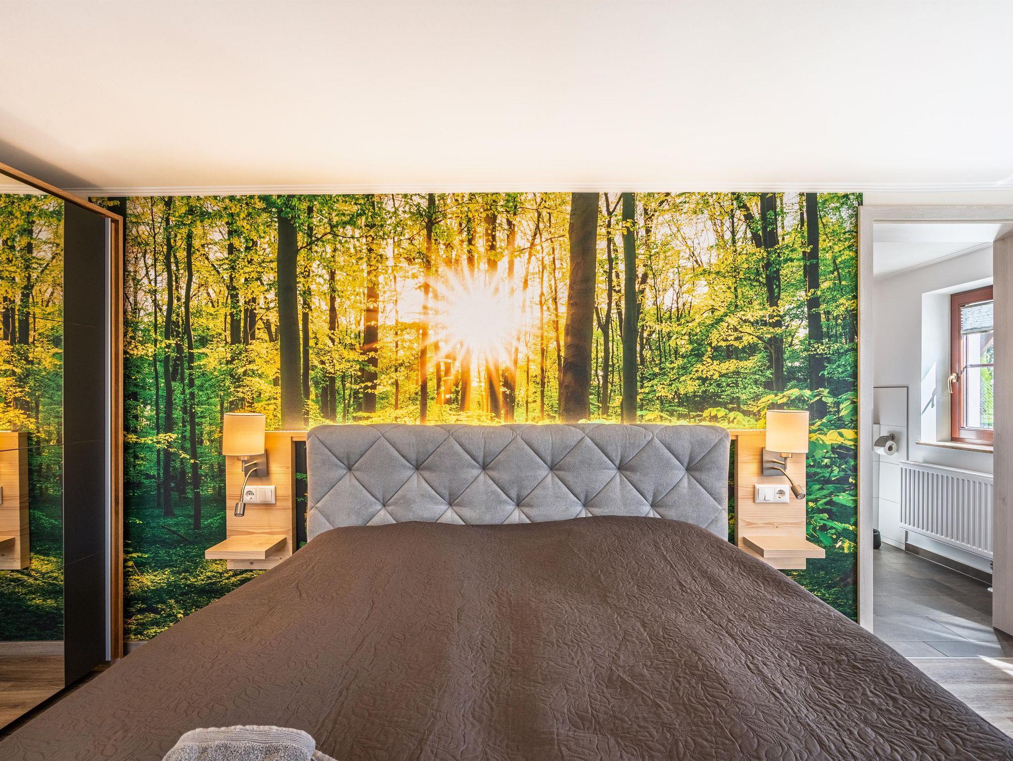 Die Ferienwohnung liegt in einer wunderschönen Landschaft, umgeben von Wäldern und Wiesen.