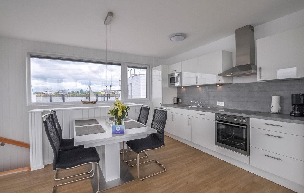 Feriehuset Haithabu er et flytende feriehus som ligger helt ytterst på brygga. Samtidig som båtplankene, utsikten over Schlei og uteområdene minner om en båttur, tilbyr denne eiendommen også all luksusen til et topputstyrt feriehus. Så hvis du foretrekker å tilbringe hele dagen på vannet, men ikke vil gå på kompromiss med komforten, vil du føle deg som hjemme her.