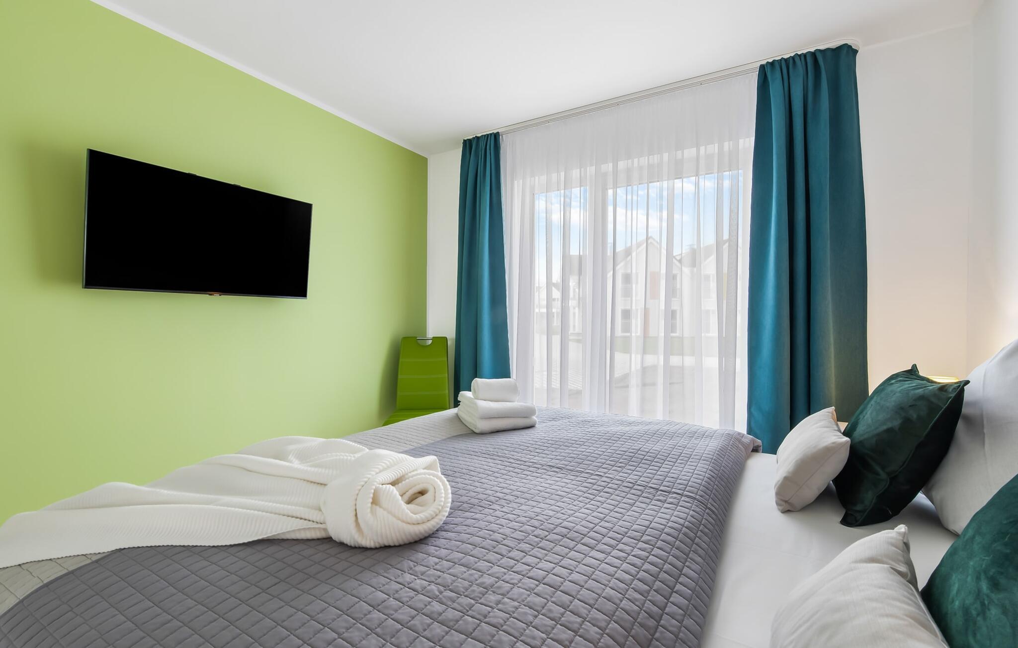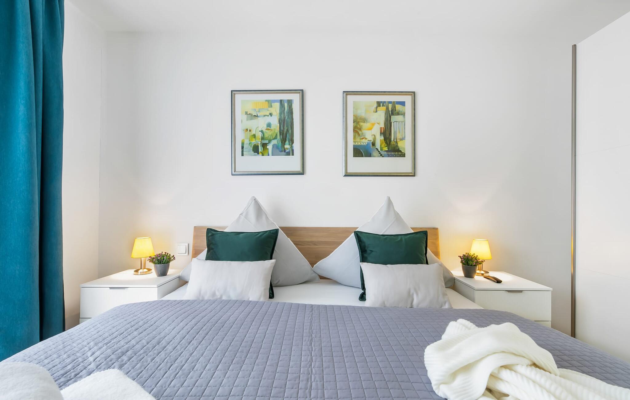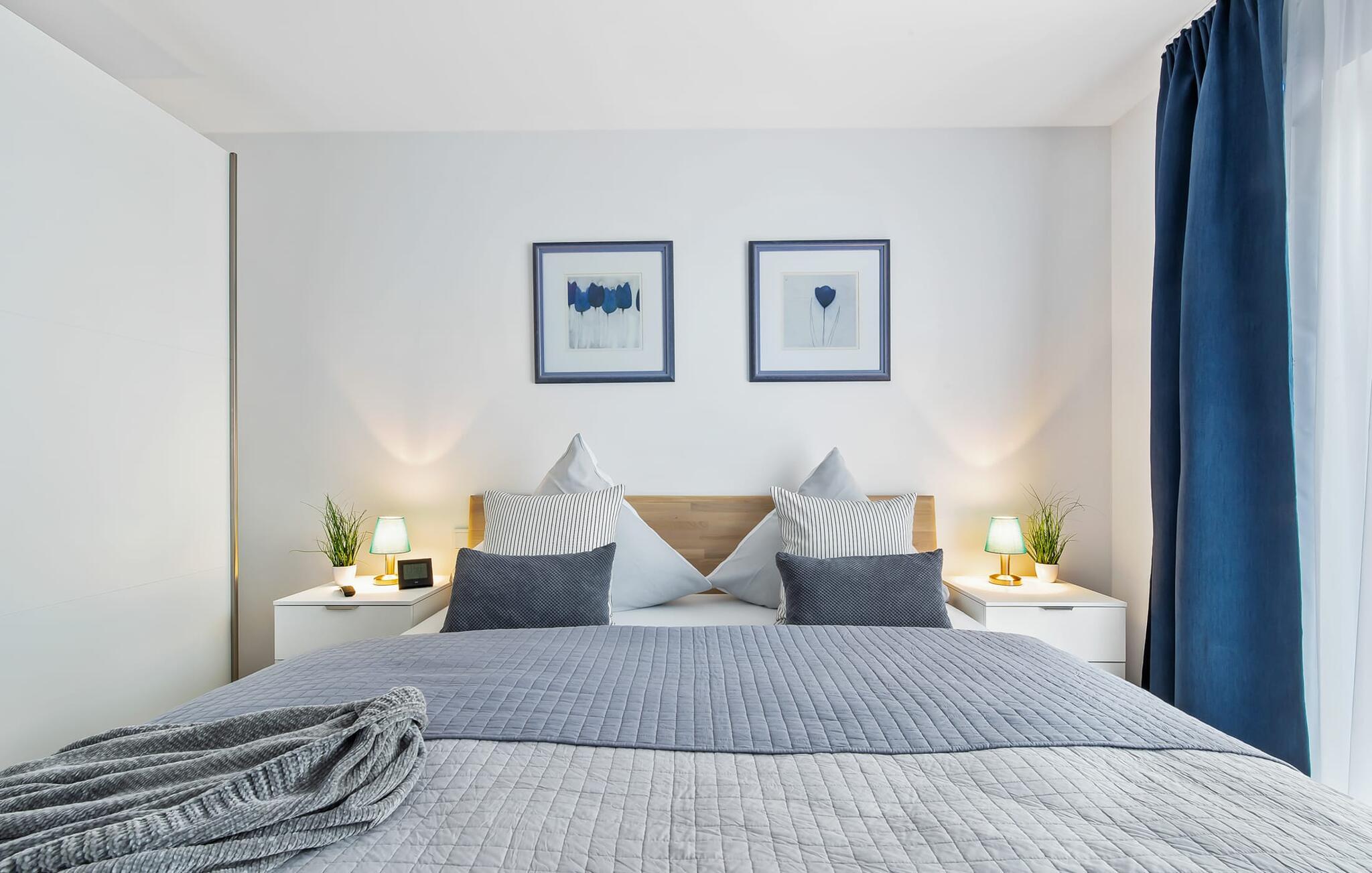 De to soverommene, hvert med dobbeltseng og TV, har også vinduer fra gulv til tak. Å sovne og våkne opp i denne atmosfæren er ren avslapning, spesielt siden sengene er i en behagelig høyde. Ved behov er det også en barneseng tilgjengelig for de minste, som også kan settes opp på foreldrenes soverom. Et sammenleggbart stellebord gjør det lettere å stelle babyen.