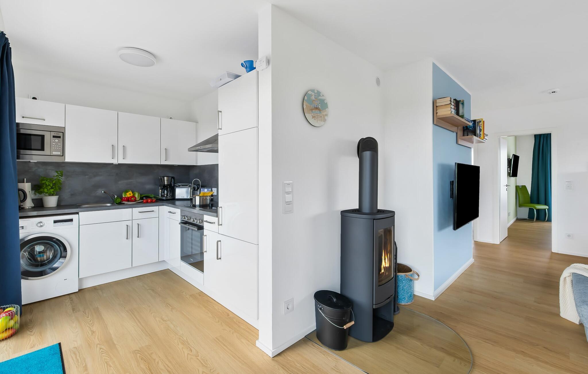 Den kombinerte stue-/spisestuen med kjøkken er hjertet i dette koselige huset, og her vil du garantert føle deg vel fra første stund. Et velutstyrt kjøkken, en koselig stue med en sofa i god høyde, TV, vedovn og en stor samling av spill innbyr til felles matlaging og hyggelige familiekvelder. Spiseplassen foran vinduene som går fra gulv til tak gir følelsen av å sitte på den tilstøtende terrassen, noe som gjør selv dager med dårlig vær til en herlig ferie. Selve terrassen venter på gjestene i solskinnet med praktiske utemøbler og en grill, og lover koselige kvelder med vakre solnedganger.