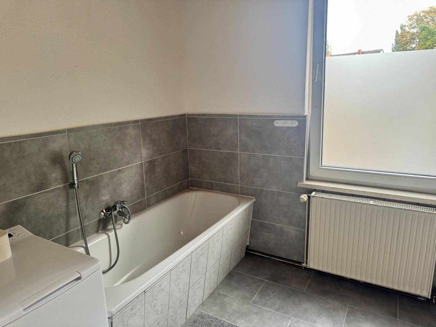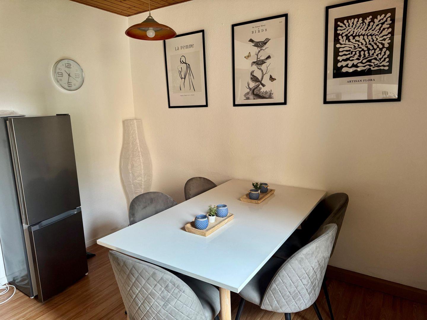 Das Herzstück ist die große, voll ausgestattete Küche mit Esstisch, die zum gemeinsamen Kochen und gemütlichen Beisammensein einlädt. Das moderne Badezimmer bietet sowohl eine Badewanne als auch eine Dusche – ideal für längere Aufenthalte.