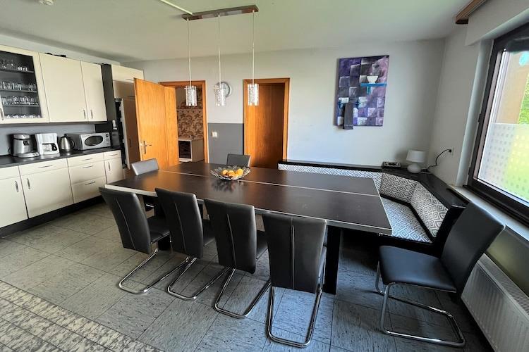 Denne lyse ferievillaen, som ligger i utkanten av skogen i Liesen nær Hallenberg, tilbyr et romslig tilfluktssted for større grupper eller familier – med plass til opptil 10 voksne og 2 barn under 3 år i fem romslige soverom. Huset ligger i den kuperte Sauerland-regionen, og er designet for komfort og fellesskap, med et fullt utstyrt kjøkken, sentralvarme og sjenerøse fellesområder, inkludert en stor spiseplass for felles måltider. Høydepunkter inkludert: Alle strømnettet er inkludert Wi-Fi Barn kan kose seg i lekeområdet i hagen og spillrommet med bordtennis, fotballspill og andre spill. Bare 200 meter fra langrennsområdet Pastorenwiese og omtrent 15 kilometer fra skibakkene i Winterberg, finner du et ekte vinterparadis. Om sommeren kan du utforske tur- og sykkelstier eller nyte vannsport på Diemelsjøen (30 kilometer unna). Grilling på terrassen, avslapning i den romslige hagen og givende dagsturer til området rundt sikrer en virkelig minneverdig ferie. Parkeringsplasser, en carport og de rolige omgivelsene fullfører opplevelsen.