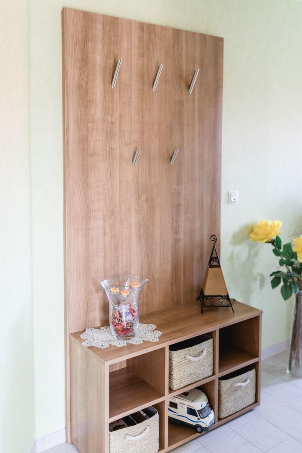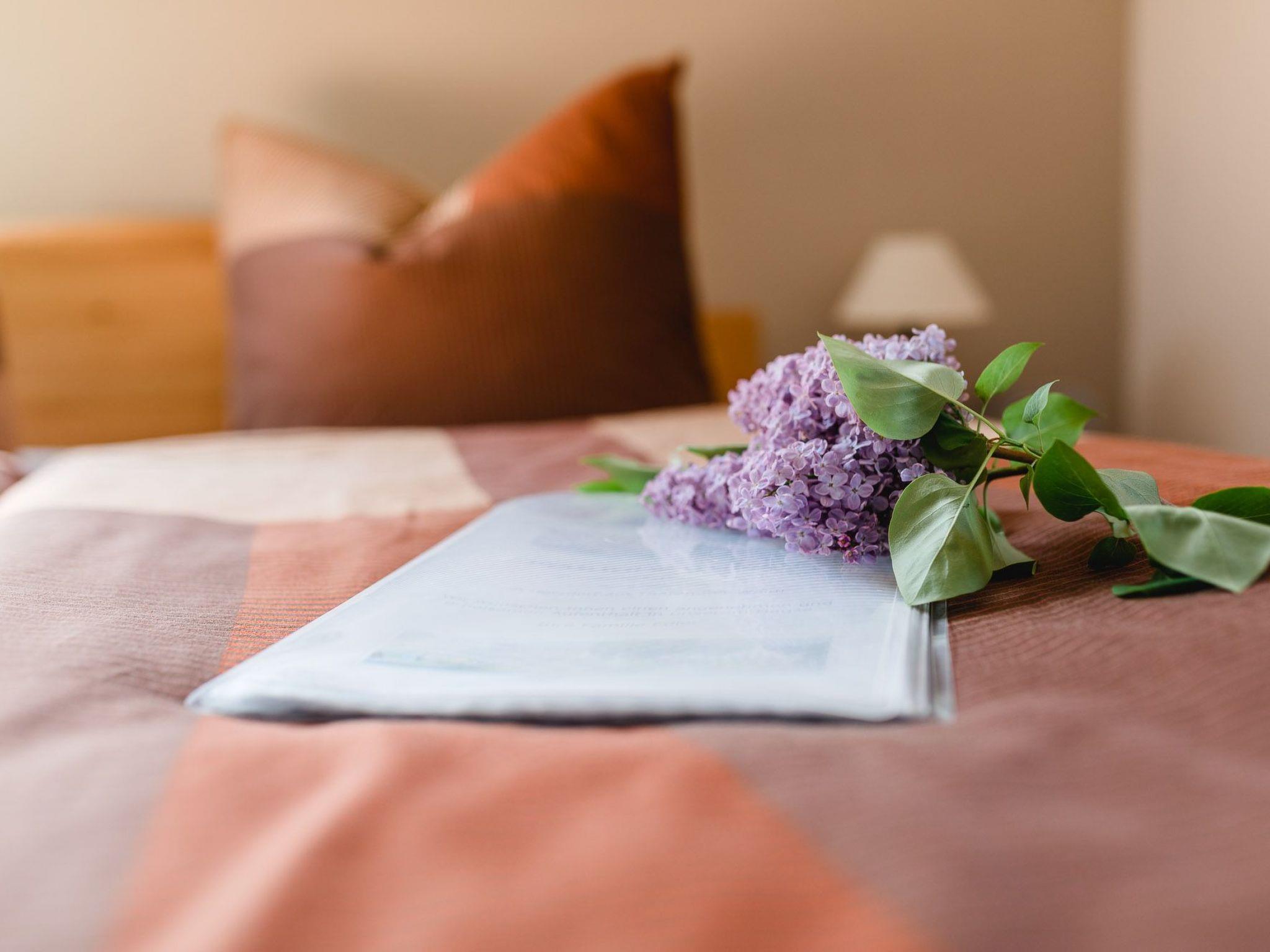 The 52m² apartment is furnished with attention to detail. The combined living and sleeping room has a double bed, a big cupboard, a table with three chairs and a TV. Supplementary beds are possible. The modern, built-in kitchen is equipped e.g. with a ceramic hob, oven, dishwasher, coffee machine, kettle,