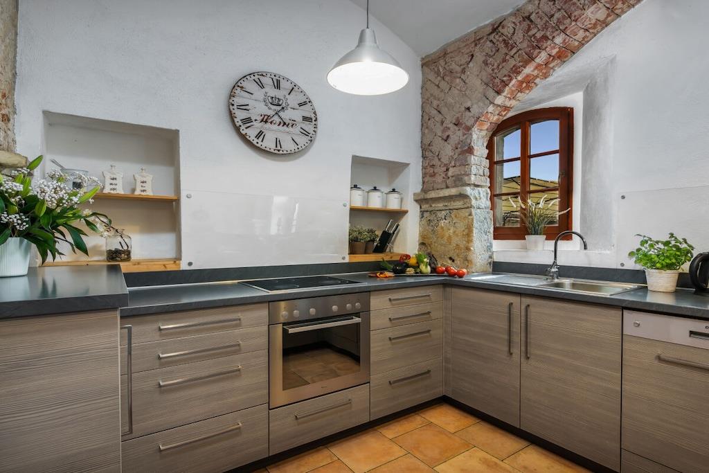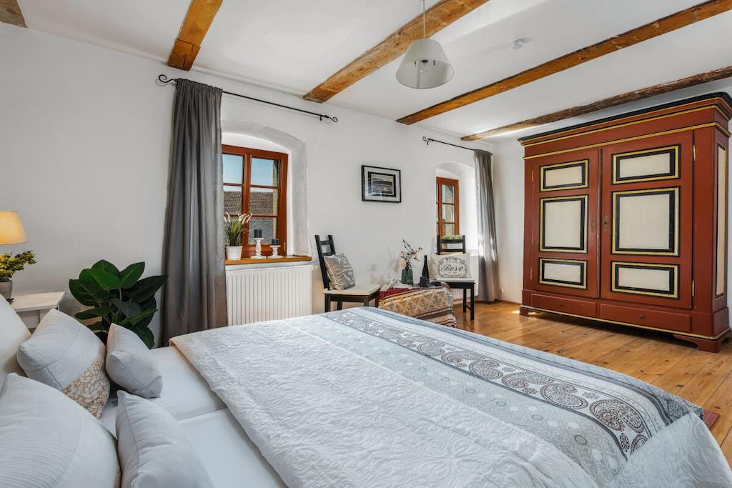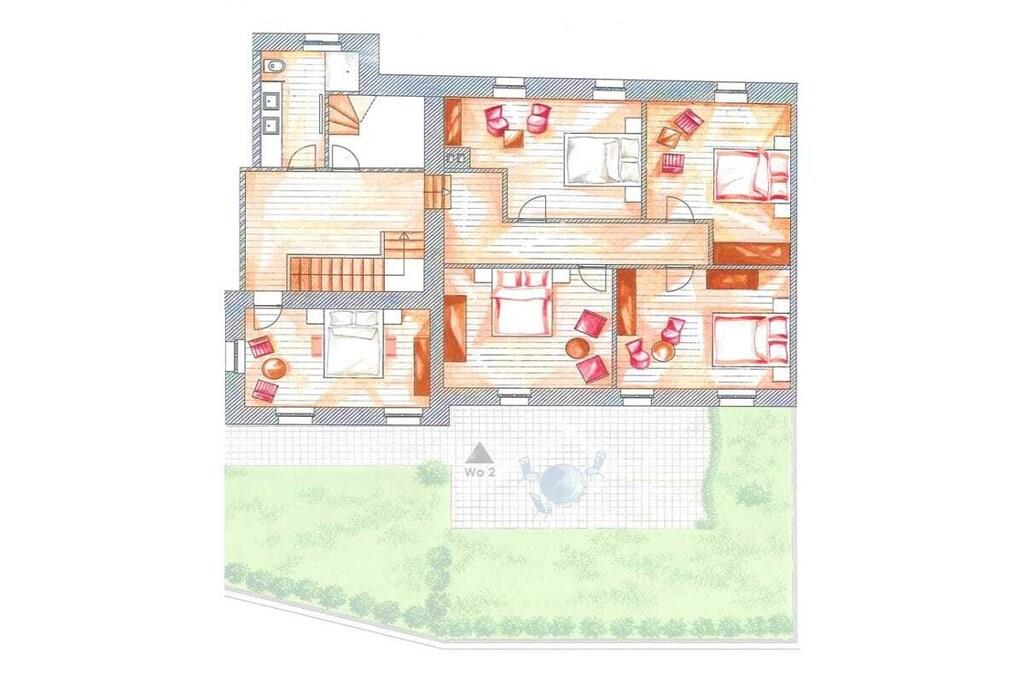 Første etasje: (Stue(, TV, peisen, DVD-spiller, DVD-spiller, radio, CD-spiller, oppvarming), spisestue(spisebord, oppvarming), Kjøkken(, , spisebord, peisen, komfyr med kokeplater, komfyr med kokeplater, vannkoker, brødrister, komfyr, kaffetrakter, stekovn, mikrobølgeovn, oppvaskmaskin, kjøleskap, insekt skjermer), bad(, WC, badekar, dusj, håndvask, oppvarming)) i 2. etasje: (bad(, WC, dusj, håndvask), guest toilet(, WC, håndvask)) , , , , soveværelse(, , dobbeltseng), soveværelse(, , dobbeltseng), soveværelse(, , dobbeltseng), soveværelse(, , dobbeltseng), soveværelse(, , dobbeltseng), soveværelse(, , dobbeltseng), Internett-tilgang, Internett-tilgang, tørketrommel, vaskemaskin, oppvarming, terrasse(, hagemøbler), hage(, Grill center, grill, hagemøbler), parkering, strykebrett, strykejern, tørkeskap