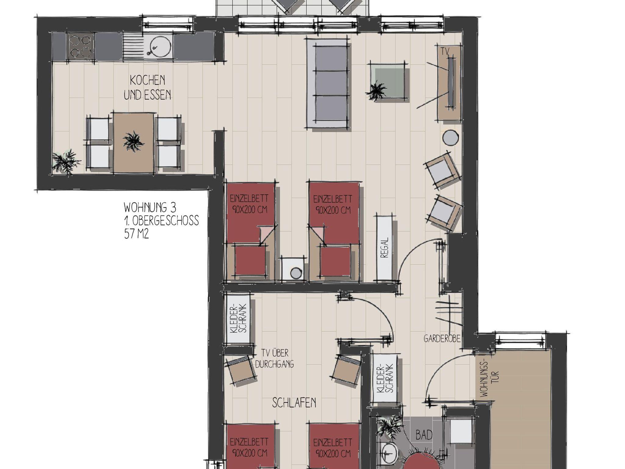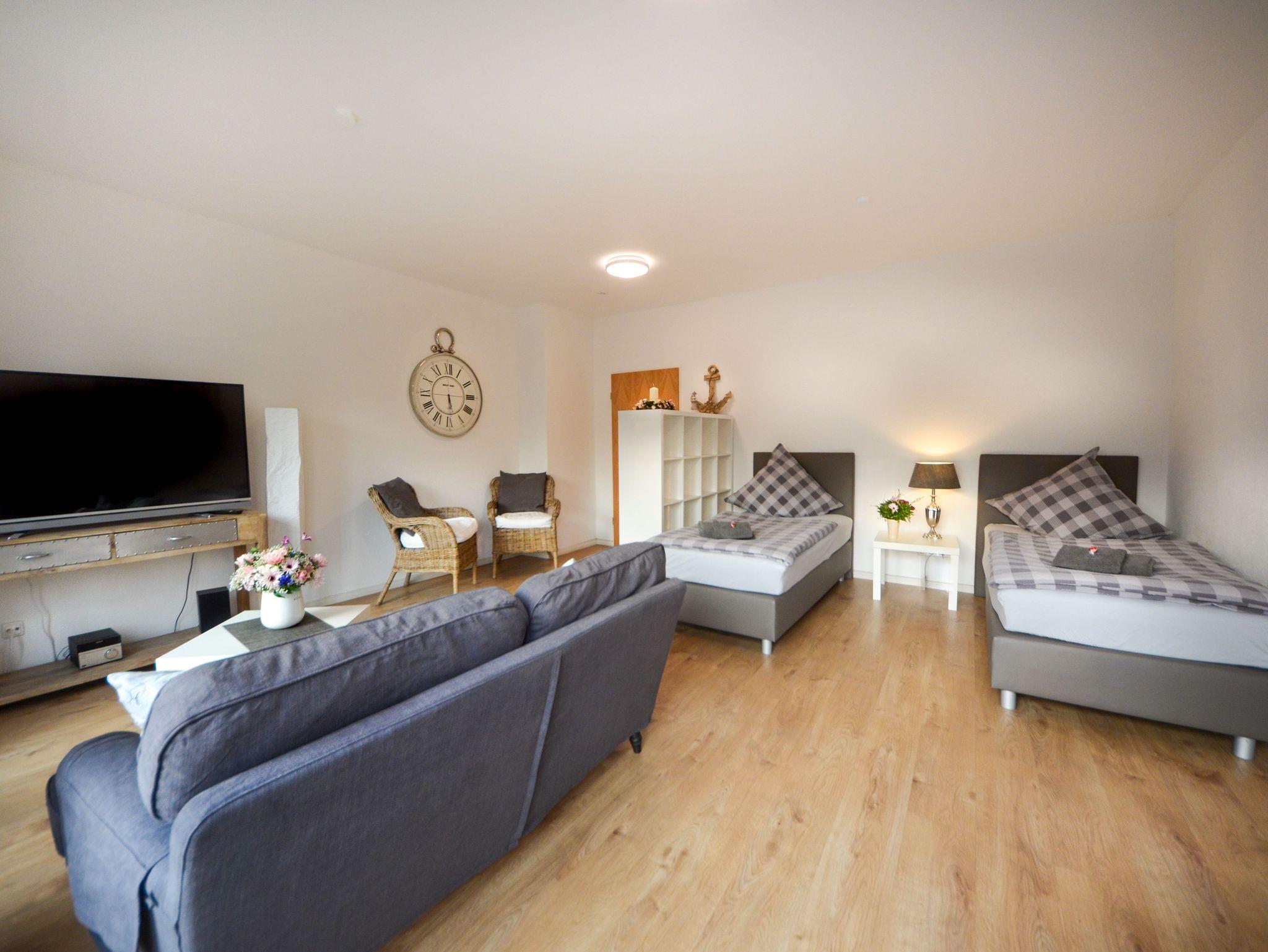 Die neu sanierte 2-Zimmer-Ferienwohnung befindet sich im Obergeschoss des Ferienhauses Marienthal. Bis zu vier Personen können hier Urlaub machen und schlafen. Das Schlafzimmer sowie das Wohnzimmer sind jeweils mit 2 Einzelbetten ausgestattet. Ein großes Duschbad und eine Wohnküche mit allem, was man auch im Urlaub nicht vermissen möchte, passen sich perfekt ins hochwertige gemütliche Wohnensemble ein. Kostenfreie Parkplätze und W-LAN sind selbstverständlich für uns. Der Balkon kann mitbenutzt werden.