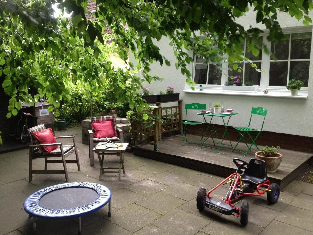 Die Wohnung steht mit 4 richtigen Schlafgelegenheiten (auch das Schlafsofa 160x200 verfügt über echte Matratzen und guten Schlafkomfort), vollausgestatteter Küche, Dusche, WC, 2 TV, Geräte DVD-Player, Terrasse mit Sitzgelegenheiten, eigenem Hauseingang und WLan modernisiert zur Verfügung und ist wirklich ein kleines Schmuckstück! Wenn Sie Gäste haben oder selbst ein Wochenende in Hamburg verbringen wollen, dann sind Sie bei uns richtig! Gern auch längere Vermietung! Wir können dann die Feinheiten abstimmen!