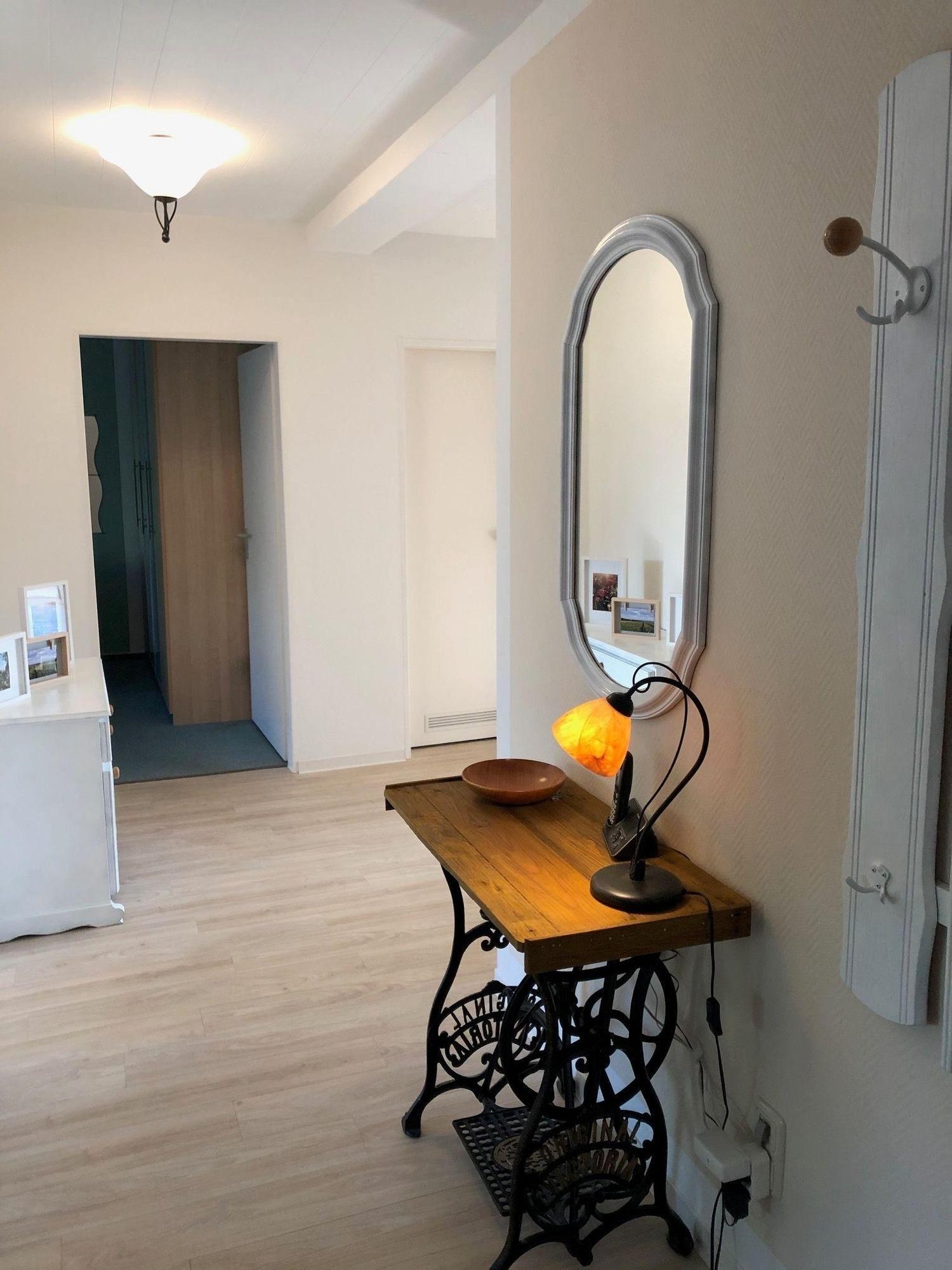 Die helle freundliche Ferienwohnung befindet sich in einem ruhigen Mehrfamilienhaus in der ersten Etage und verfügt über zwei Schlafzimmer. Ein großes Schlafzimmer mit einem Doppelbett und einem Einzelbett (Ausziehsessel mit Matratze) sowie zwei großen Kleiderschränken und ein kleineres Schlafzimmer mit einem Einzelbett und einem Schreibtisch.