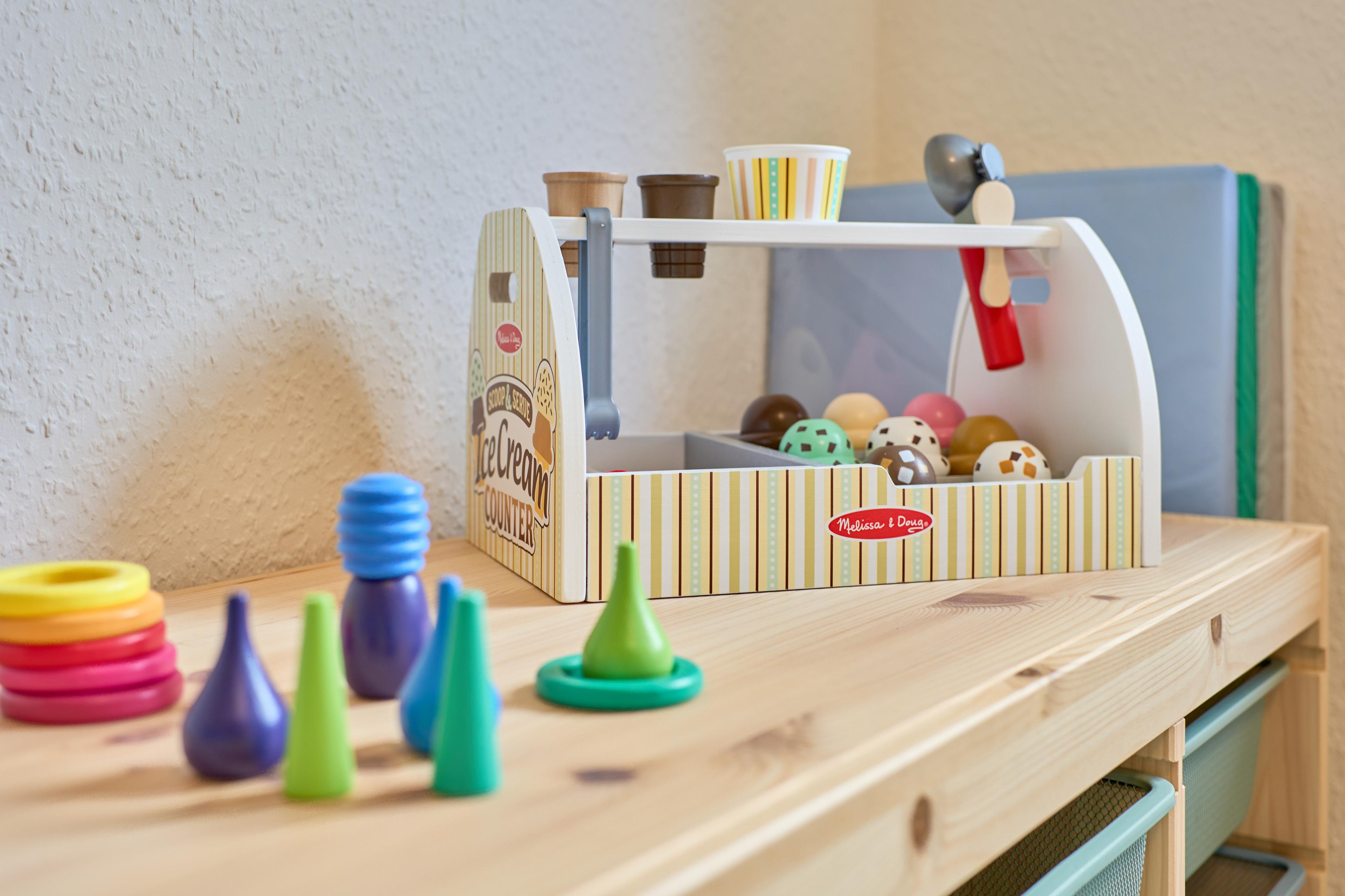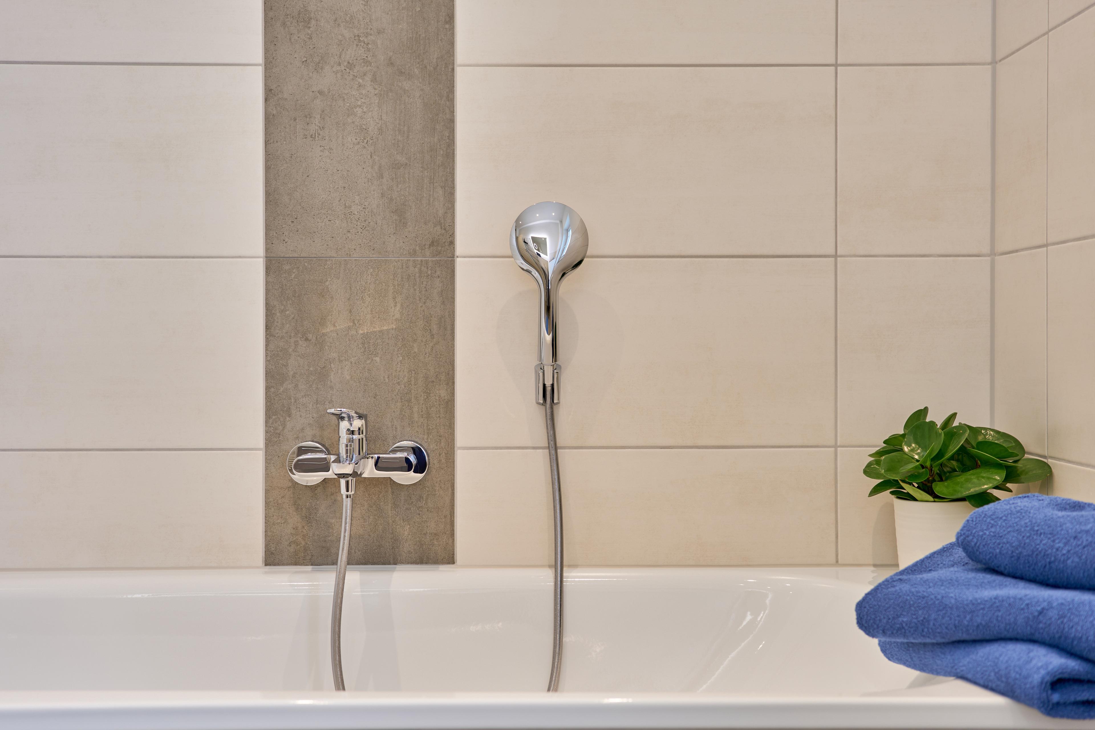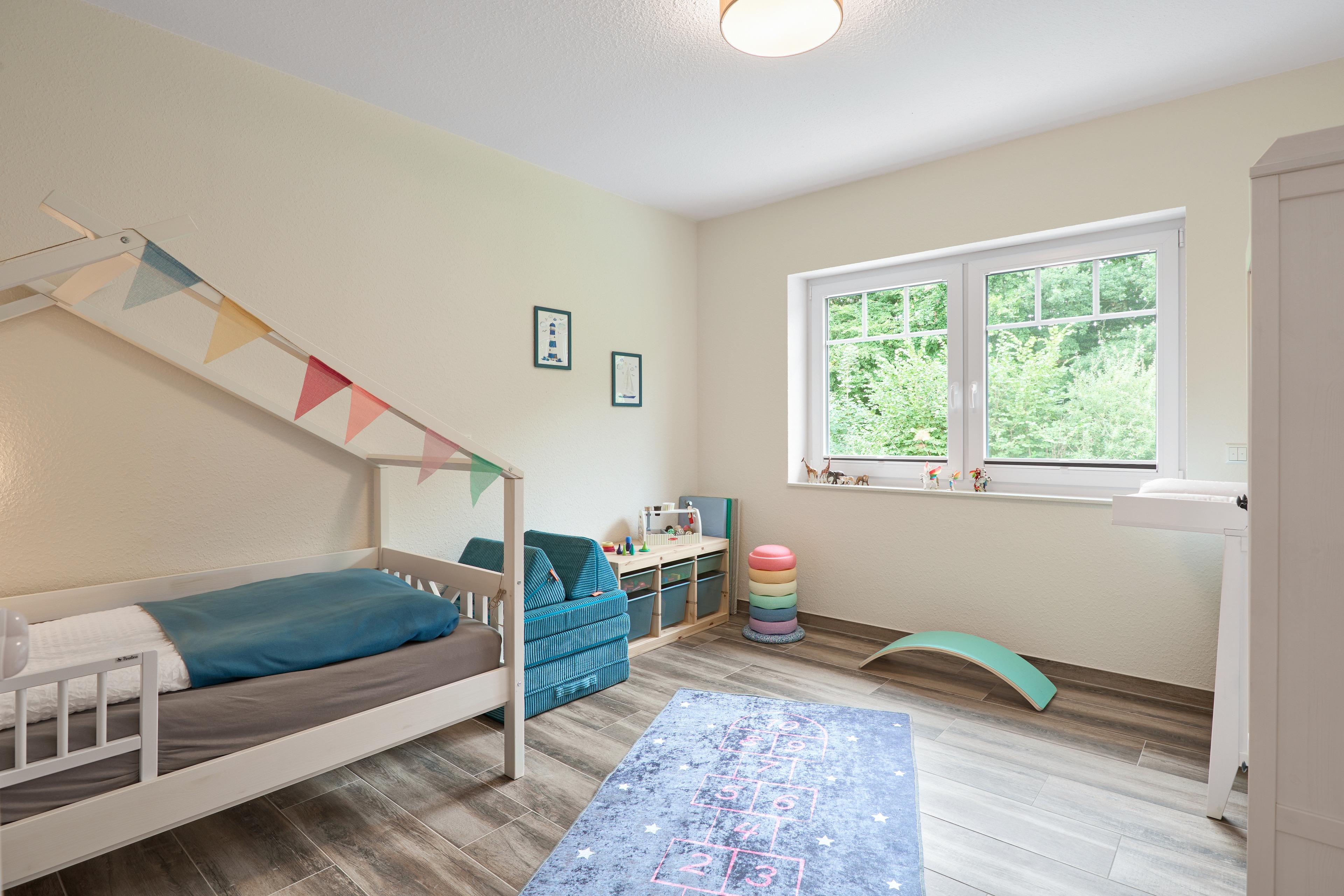 ich erwartet in der Wohnung: Ein Schlafzimmer mit Familienbett (240x200), ein Kinderzimmer mit zwei Einzelbetten (90x200) und ein Kinderzimmer mit Kinderbett (90x200), Wickelkommode, hochwertiges Spielzeug, sehr gut ausgestattete Küche, Badezimmer mit Wellnessdusche & Badewanne, großer, eingezäunter Garten mit überdachter Terrasse.