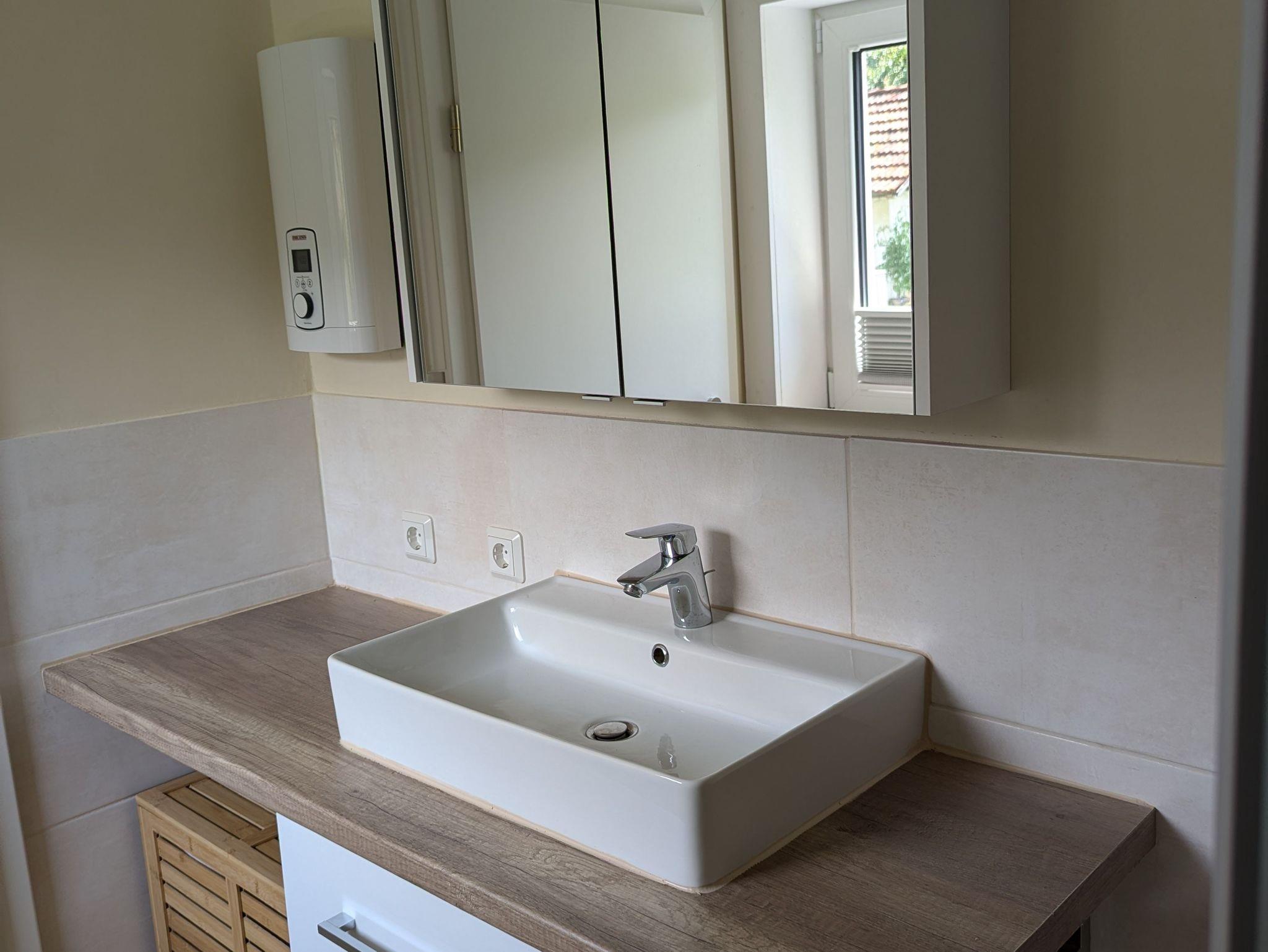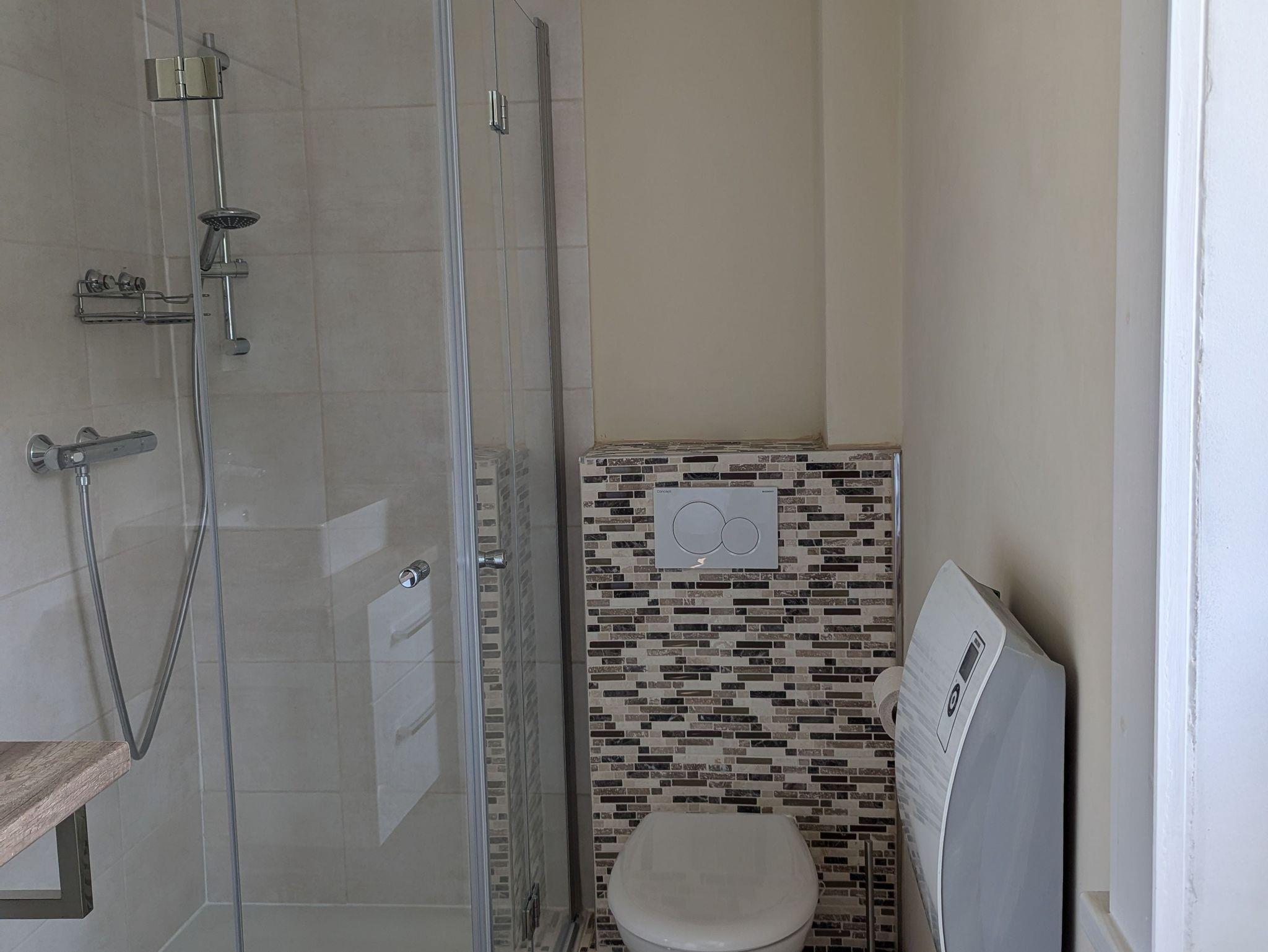 - Bad mit Außenfenster, Toilette, Dusche, Fön, Handtücher, Seife, Heizlüfter