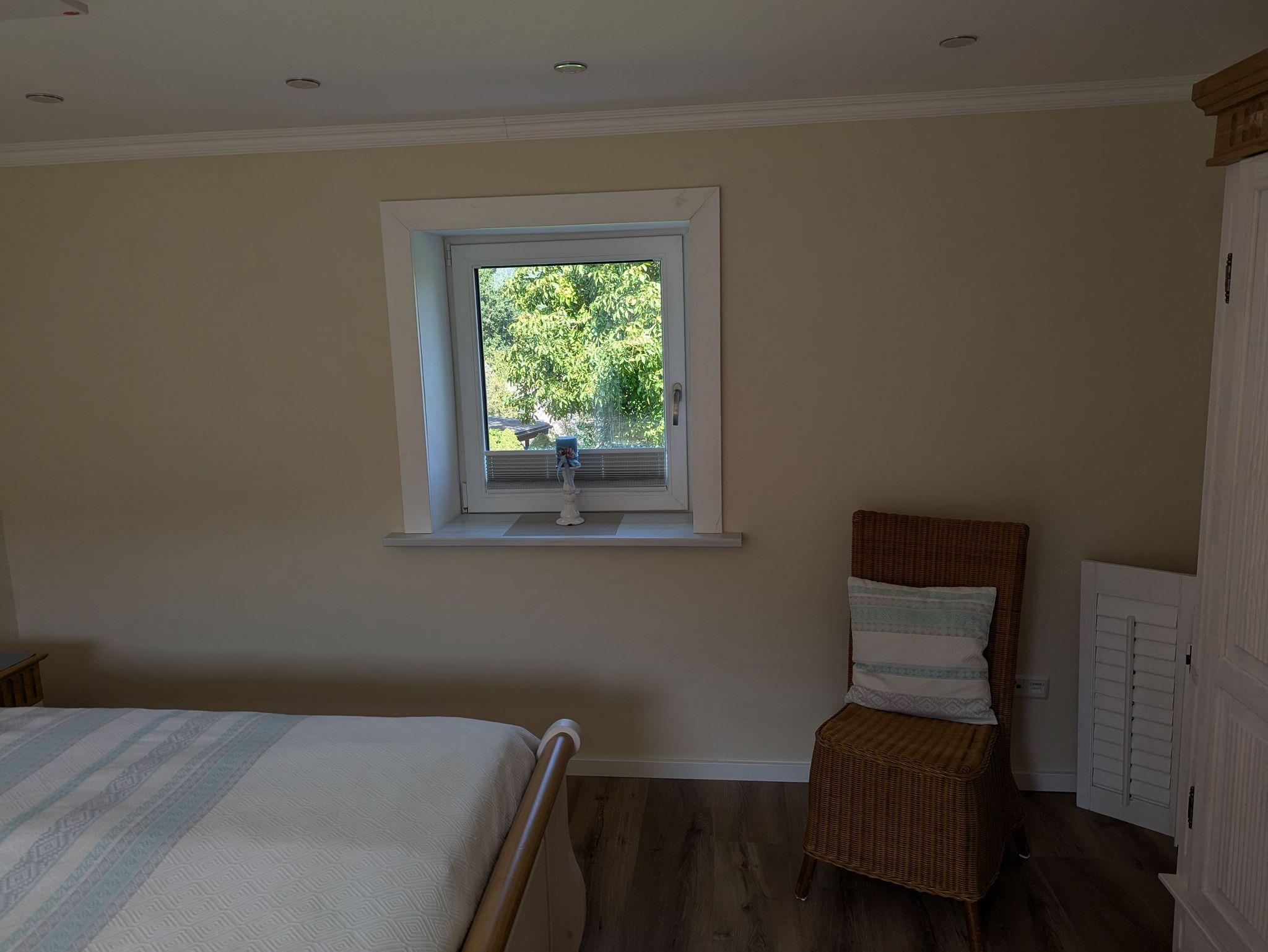 - Schlafzimmer mit Kleiderschrank, Doppelbett (180cm x 200cm), Bettwäsche ist vorhanden