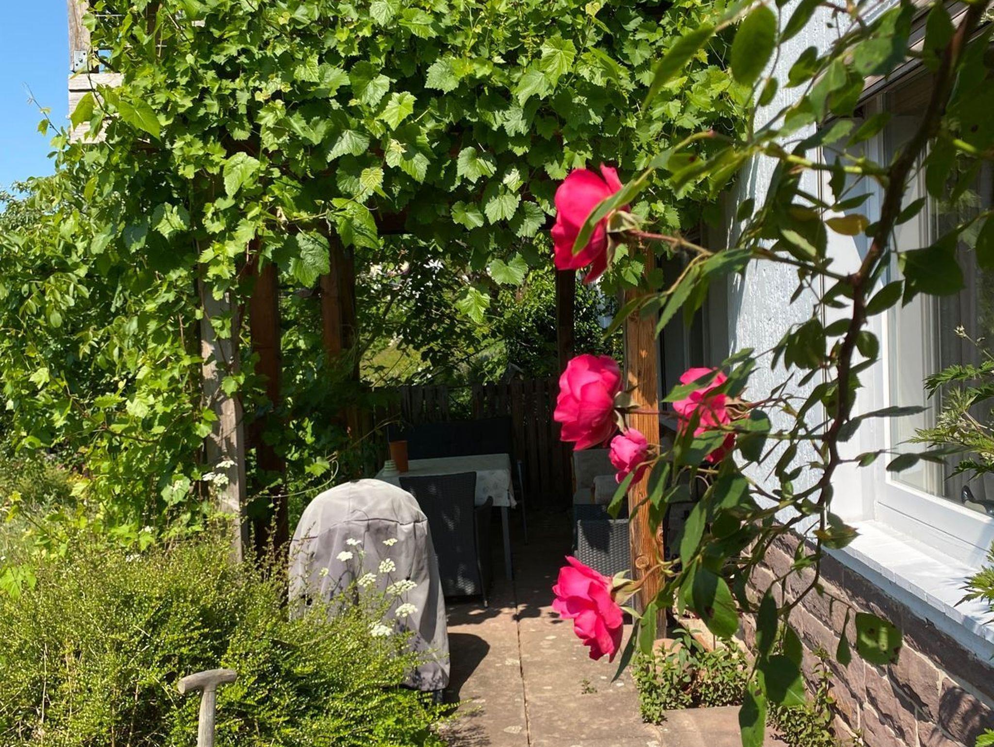 Sie haben einen separaten Eingang, eine überdachte Terrasse und einen großen Garten mit Grillplatz und Liegewiese.