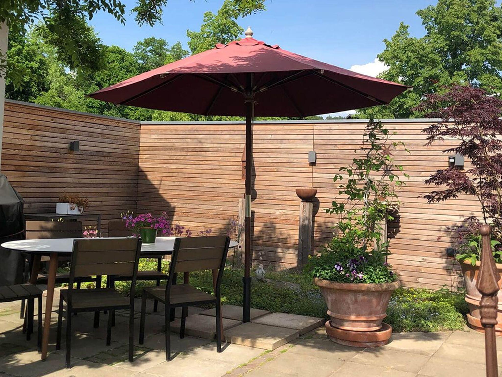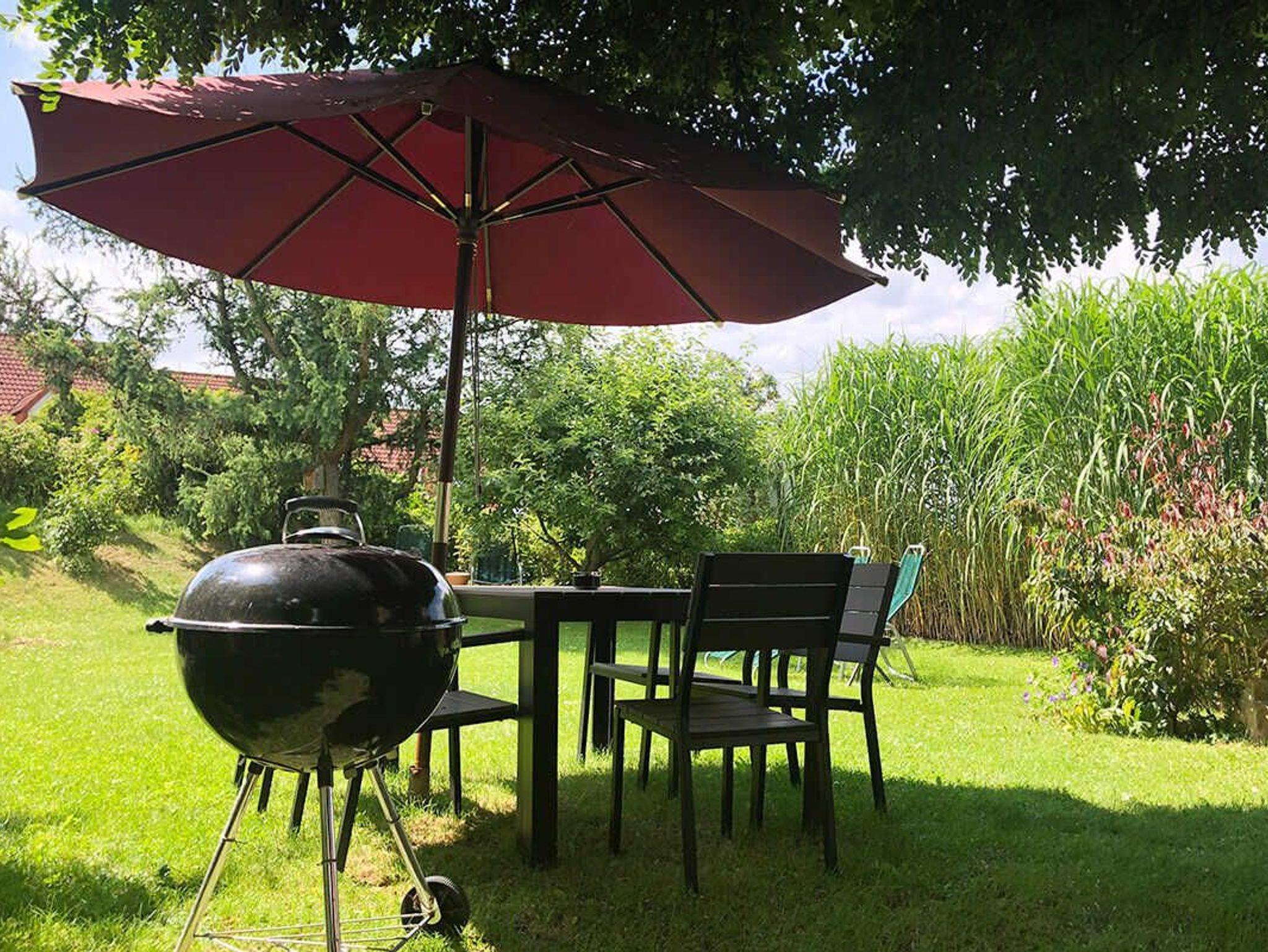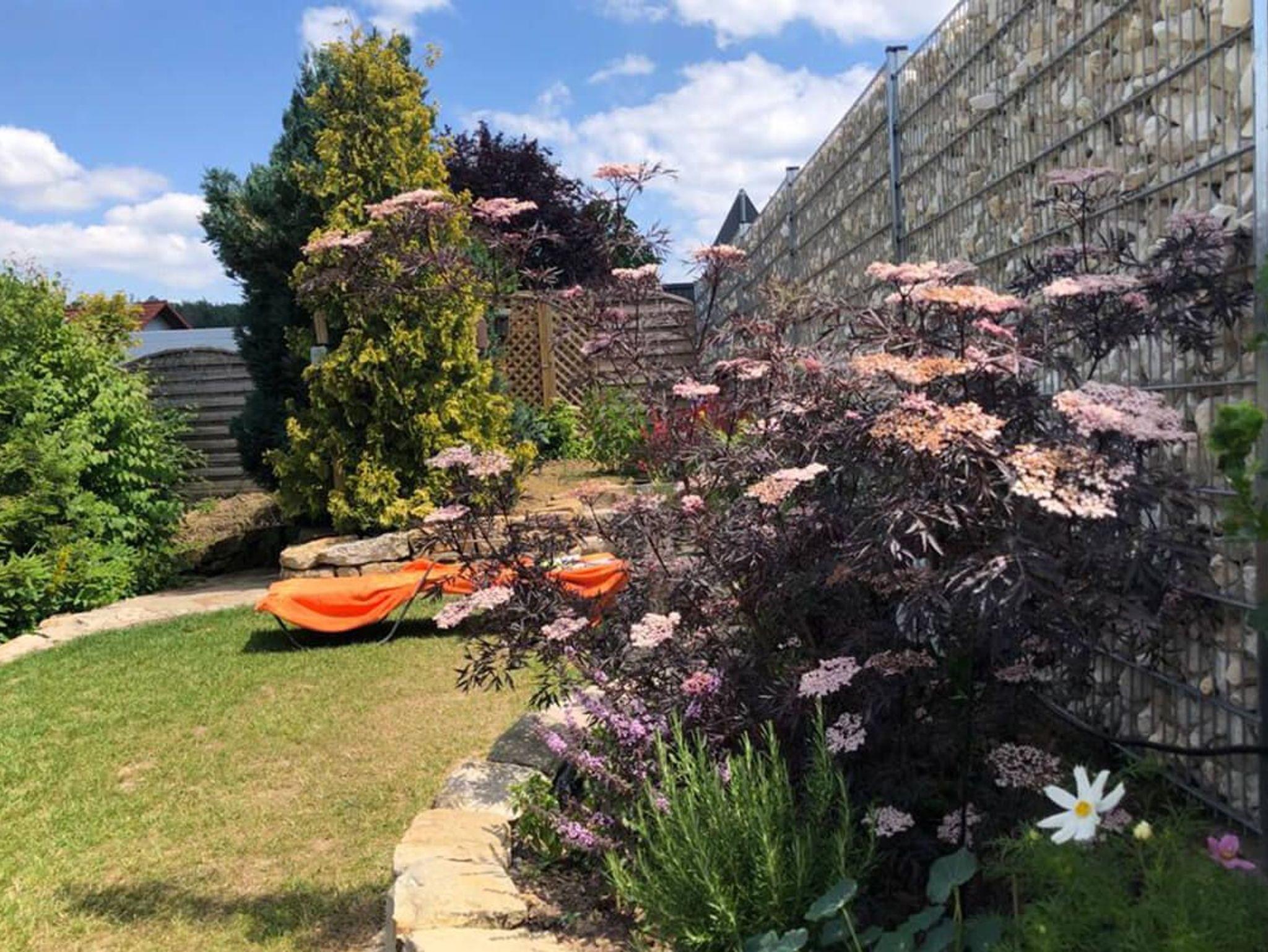 In unseren Gästewohnungen können wir insgesamt bis zu 9 Gäste beherbergen. Allergiker freundlich: Nichtraucher-Haus, keine Haustiere. Ein weiterer großer Garten mit Sonnenschirmen und Liegen steht zur Verfügung. Gartengrill. Dazu eigene Parkplätze, Car-Port für Ihre Fahrräder, abschließbar.