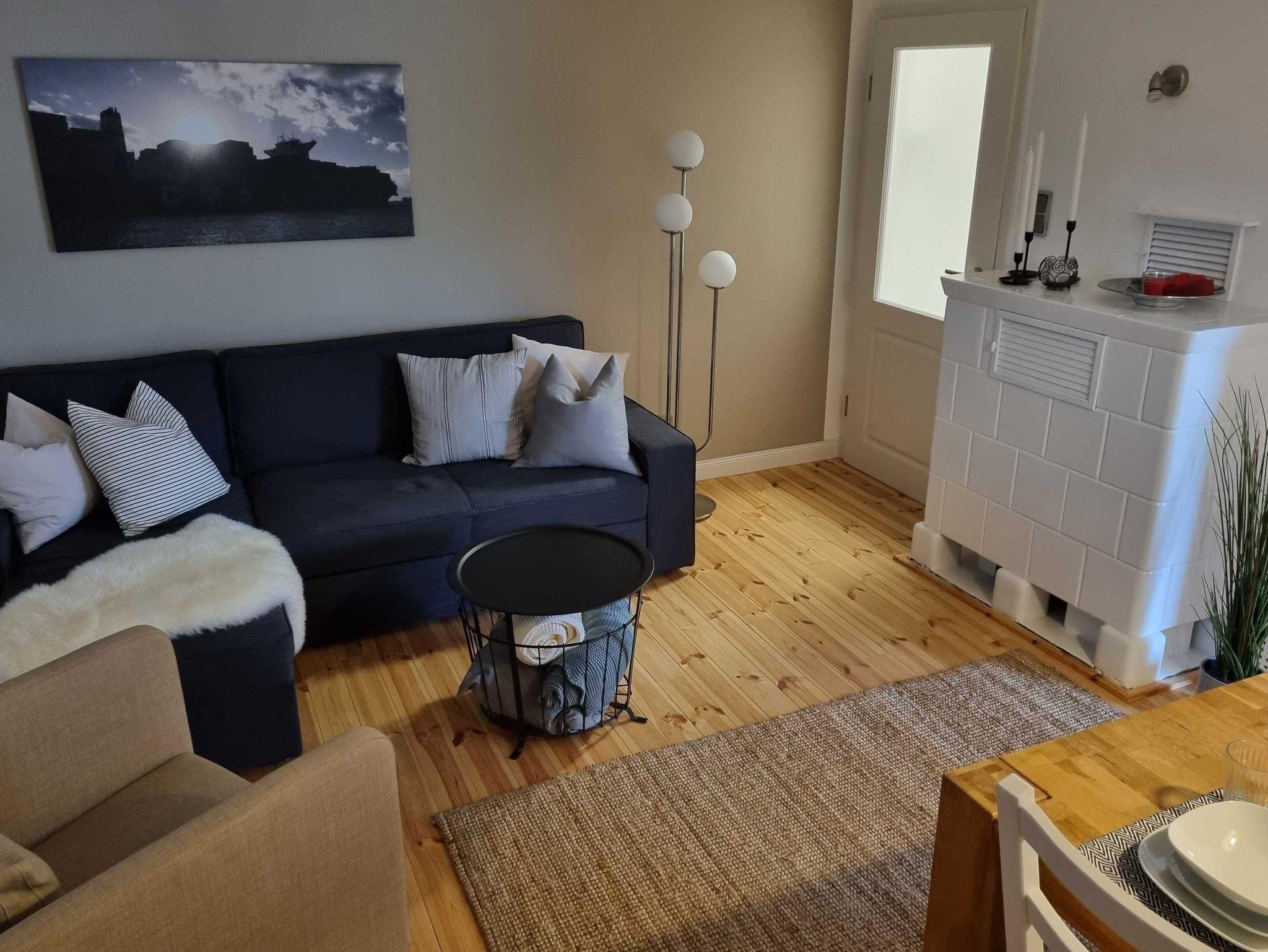 Ganz neu ausgebaute, helle Wohnung, modern eingerichtet. Offene, komplett ausgestattete Küche und ein Schlafzimmer mit großem Doppelbett. Wohn- / Esszimmer mit zusätzlicher Schlafcouch, dazu ein Badezimmer mit WC und Dusche. Die Ferienwohnung hat einen separaten Eingang, einen PKW-Stellplatz auf dem umzäunten Grundstück und vor der Küche befindet sich eine Sonnenterrasse mit Garten- und Grillgarnitur. Es handelt sich um eine reine Nichtraucherwohnung mit Holz- bzw. Fliesenböden, hohen Zimmern in sehr ruhiger Lage an einer Anwohnerstraße direkt am Elbdeich.