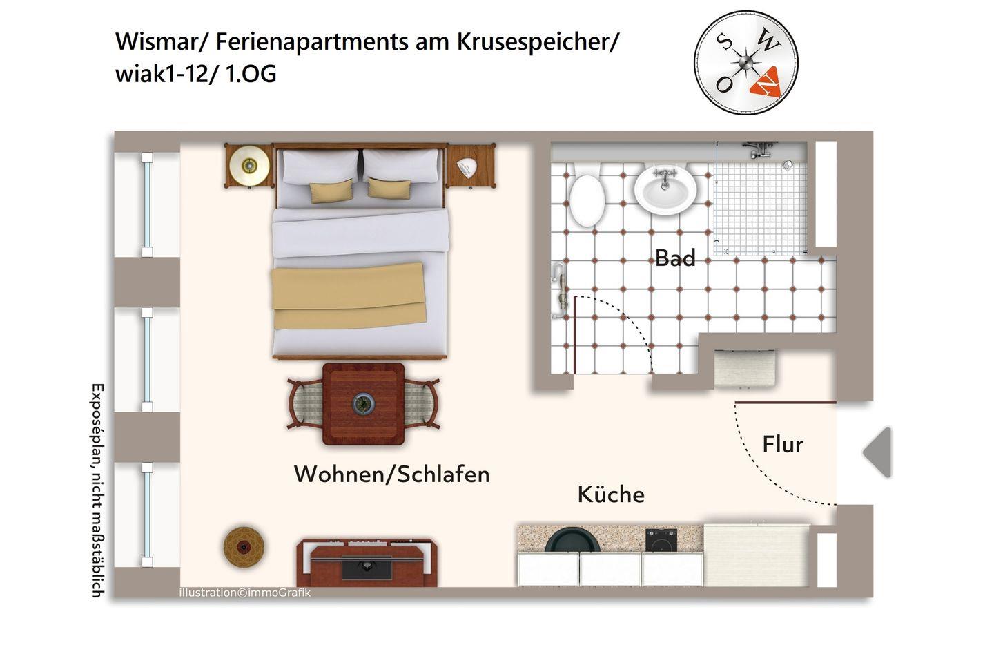 Das hochwertige Apartment befindet sich in südöstlicher Lage im ersten Obergeschoss des Gebäudes. Der Alte Hafen von Wismar, einer der attraktivsten Orte der Hansestadt, liegt euch hier zu Füßen. Von hier aus lässt sich die Stadt und das schöne Umland ideal erkunden. Der Alte Hafen ist übrigens auch ein sehr beliebter Veranstaltungsort für Events und Feste.