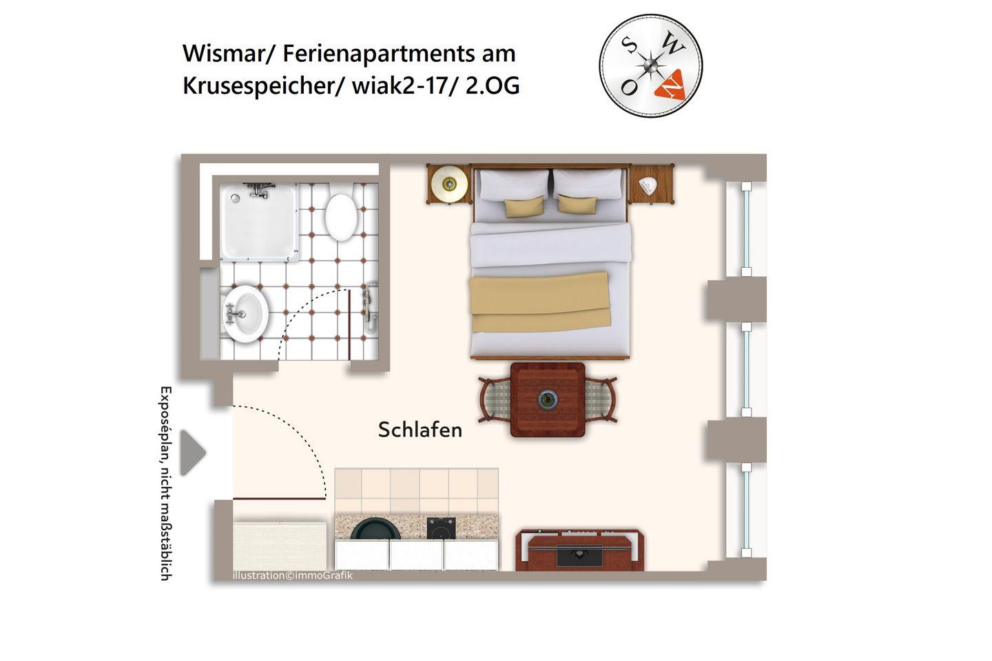 Das hochwertige Apartment befindet sich in nordwestlicher Lage im zweiten Obergeschoss des Gebäudes. Der Alte Hafen von Wismar, einer der attraktivsten Orte der Hansestadt, liegt euch hier zu Füßen. Von hier aus lässt sich die Stadt und das schöne Umland ideal erkunden. Der Alte Hafen ist übrigens auch ein sehr beliebter Veranstaltungsort für Events und Feste.