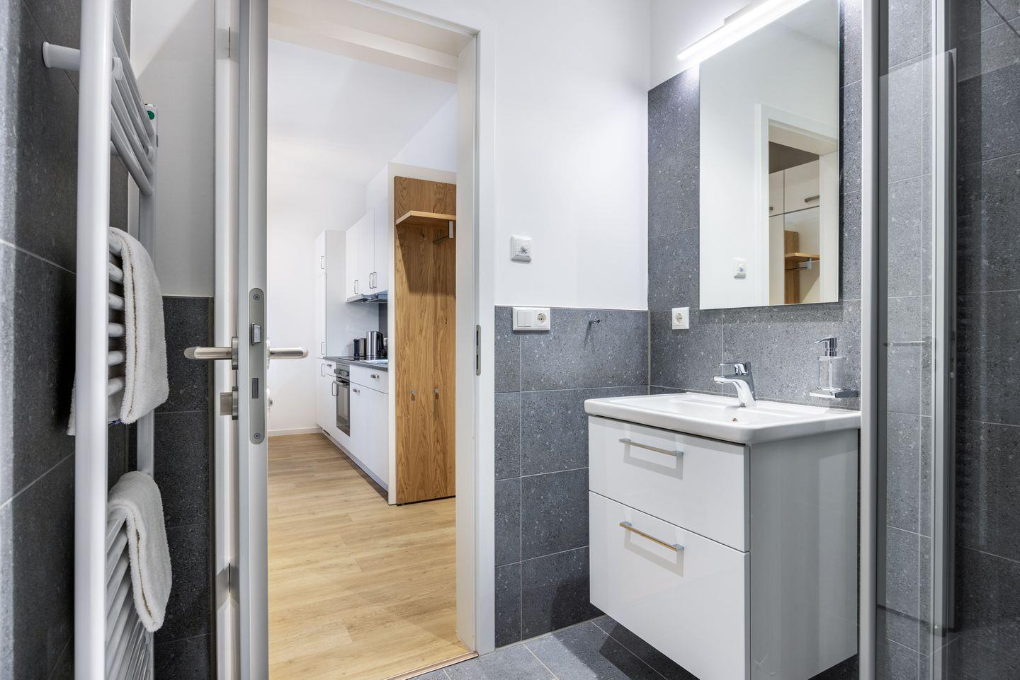 Das helle Apartment verfügt über bodentiefe Fenster, Fußbodenheizung, kostenfreies WLAN und eine voll ausgestattete offene Küche mit Geschirrspüler, Kühlschrank mit Tiefkühlfach, Herd mit 4 Glaskeramikkochfeldern und Backofen, Kaffeemaschine, Toaster, Wasserkocher und Mixstab. Im kombinierten Wohn-Essbereich befinden sich eine Einzelschlafcouch (1,20 x 2,00 m), ein Flatscreen-TV (42 Zoll), eine HiFi-Anlage sowie Gesellschaftsspiele. Genießt schöne Stunden auf dem Balkon mit Blick zum Hafen. Das Schlafzimmer beinhaltet ein komfortables Boxspring-Doppelbett (1,80 x 2,00 m) und einen Flatscreen-TV (42 Zoll). Im geschmackvollen Badezimmer stehen euch eine ebenerdige Regendusche, ein Waschtisch, WC, ein Handtuchwärmer sowie ein Föhn zur Verfügung. Das Apartment verfügt über einen Safe für eine Laptopgröße bis ca. 17 Zoll.