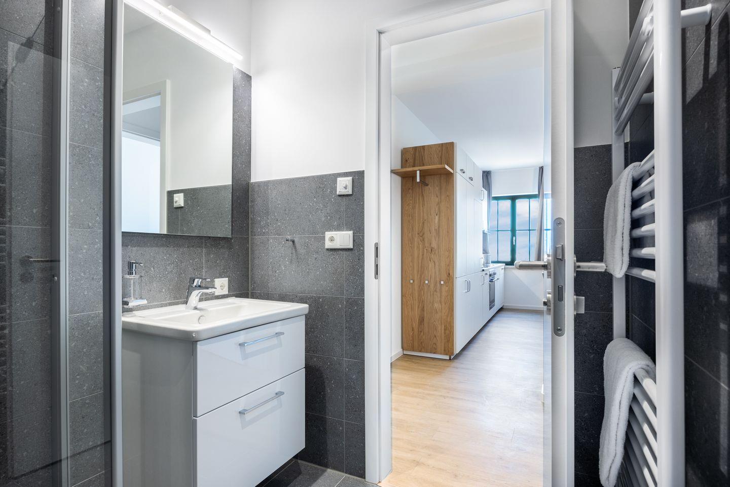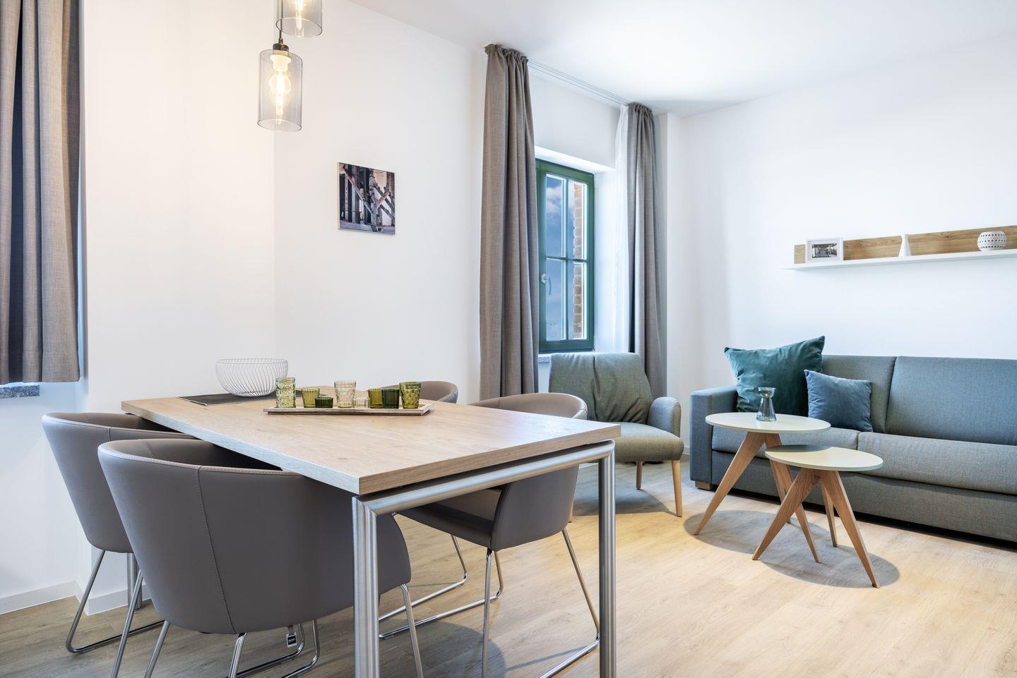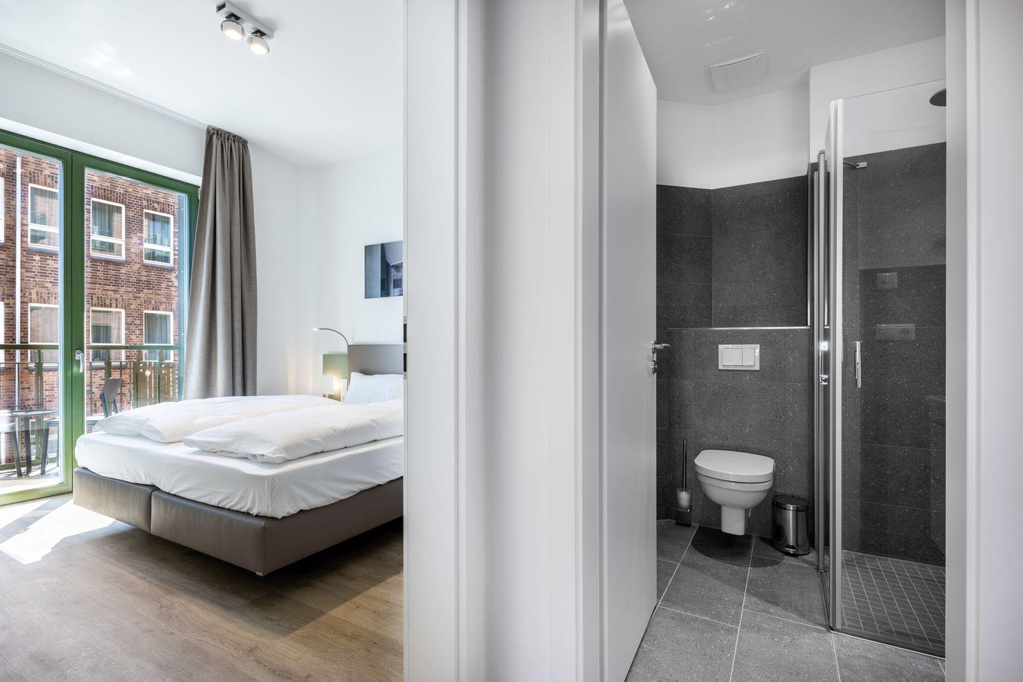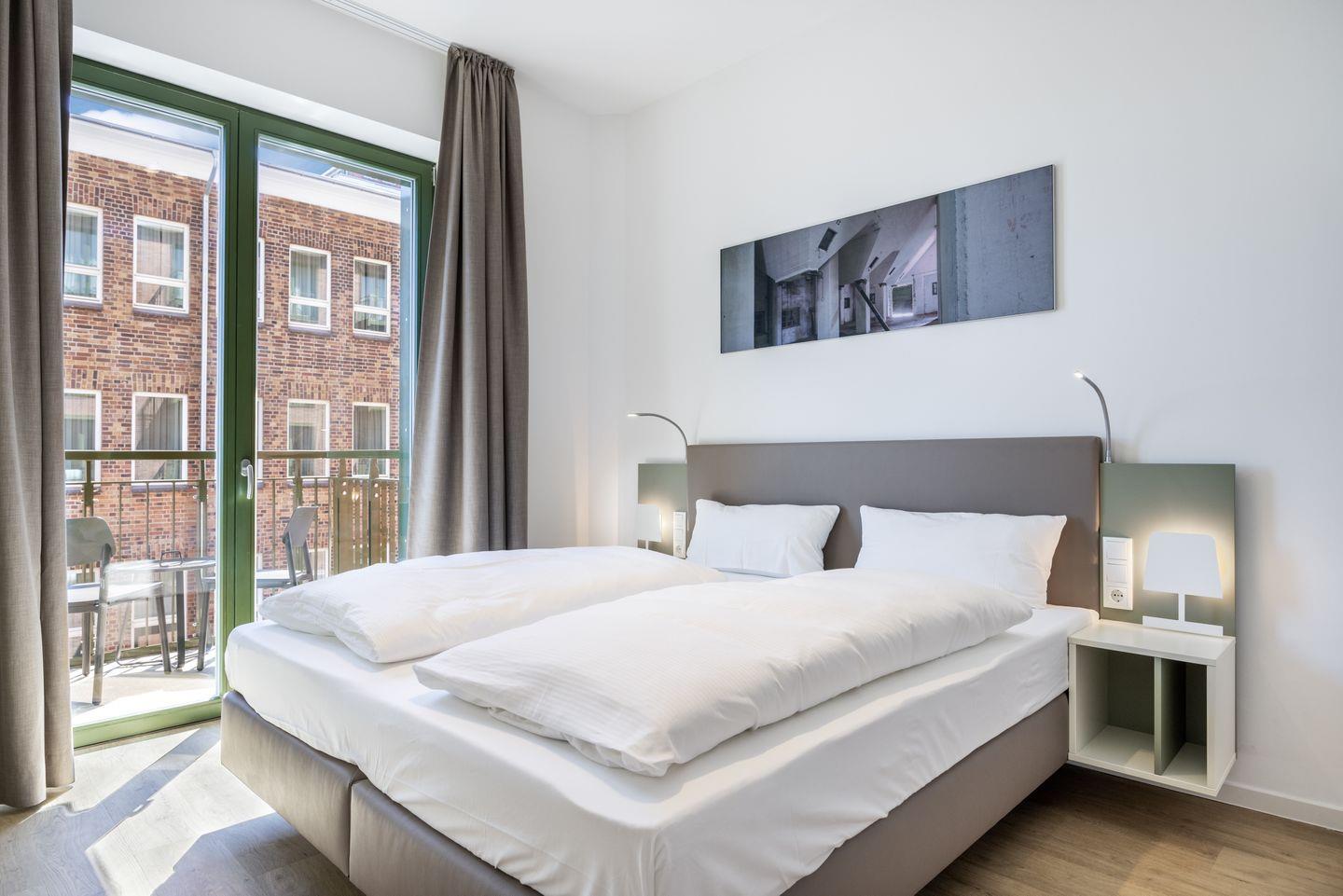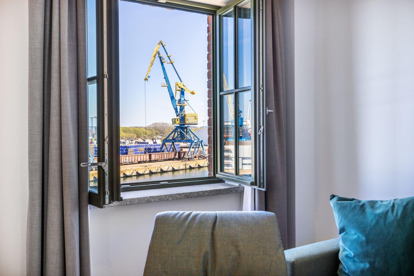 Das helle Apartment verfügt über bodentiefe Fenster im Schlafzimmer, Fußbodenheizung, kostenfreies WLAN und eine voll ausgestattete offene Küche mit Geschirrspüler, Kühlschrank mit Tiefkühlfach, Herd mit 4 Glaskeramikkochfeldern und Backofen, Kaffeemaschine, Toaster, Wasserkocher und Mixstab. Im kombinierten Wohn-Essbereich befinden sich eine Doppelschlafcouch (1,40 x 2,00 m), ein Flatscreen-TV (42 Zoll), eine HiFi-Anlage sowie Gesellschaftsspiele. Genießt schöne Stunden auf dem Balkon mit Blick zum Hafen. Das Schlafzimmer beinhaltet ein komfortables Boxspring-Doppelbett (1,80 x 2,00 m) und einen Flatscreen-TV (42 Zoll). Im geschmackvollen Badezimmer stehen euch eine ebenerdige Regendusche, ein Waschtisch, WC, ein Handtuchwärmer sowie ein Föhn zur Verfügung. Das Apartment verfügt über einen Safe für eine Laptopgröße bis ca. 17 Zoll.