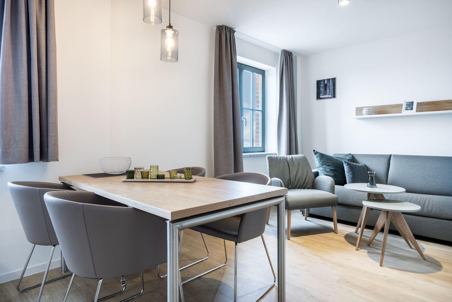 Das 42 m² große barrierearme 2-Zimmer Apartment, wiks5-60, befindet sich im Upstalsboom Krusespeicher und ist für bis zu 4 Personen geeignet. Das moderne Apartment mit Balkon und seitlichem Blick auf den Hafen verfügt über kostenfreies WLAN.