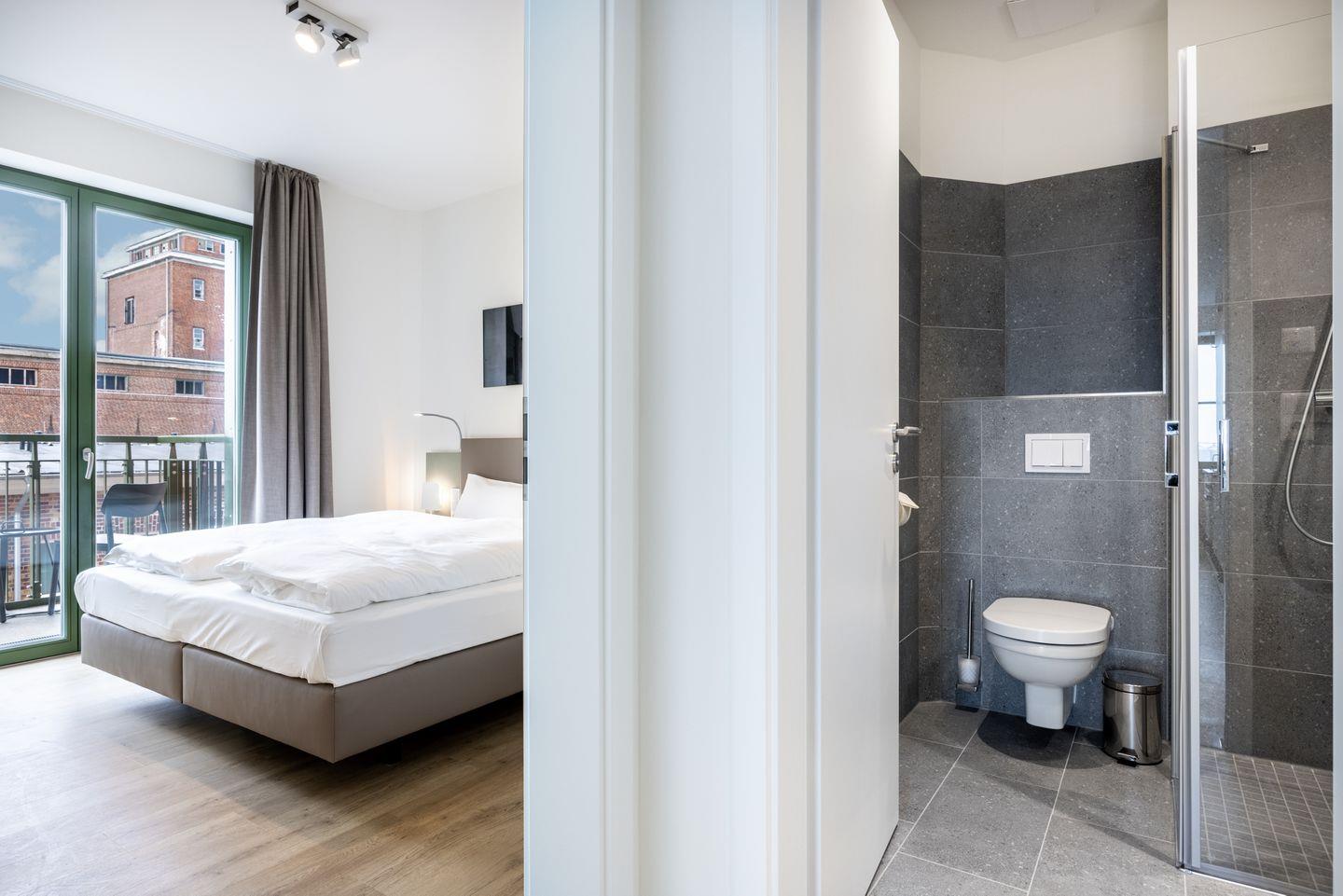 Das helle Apartment verfügt über bodentiefe Fenster im Schlafzimmer, Fußbodenheizung, kostenfreies WLAN und eine voll ausgestattete offene Küche mit Geschirrspüler, Kühlschrank mit Tiefkühlfach, Herd mit 4 Glaskeramikkochfeldern und Backofen, Kaffeemaschine, Toaster, Wasserkocher und Mixstab. Im kombinierten Wohn-Essbereich befinden sich eine Doppelschlafcouch (1,40 x 2,00 m), ein Flatscreen-TV (42 Zoll), eine HiFi-Anlage sowie Gesellschaftsspiele. Genießt schöne Stunden auf dem Balkon mit Blick zum Hafen. Das Schlafzimmer beinhaltet ein komfortables Boxspring-Doppelbett (1,80 x 2,00 m) und einen Flatscreen-TV (42 Zoll). Im geschmackvollen Badezimmer stehen euch eine ebenerdige Regendusche, ein Waschtisch, WC, ein Handtuchwärmer sowie ein Föhn zur Verfügung. Das Apartment verfügt über einen Safe für eine Laptopgröße bis ca. 17 Zoll.
