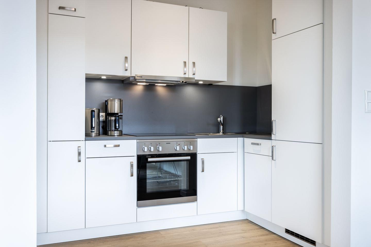 Das helle Apartment verfügt über bodentiefe Fenster, Fußbodenheizung, kostenfreies WLAN und eine voll ausgestattete offene Küche mit Geschirrspüler, Kühlschrank mit Tiefkühlfach, Herd mit 4 Glaskeramikkochfeldern und Backofen, Kaffeemaschine, Toaster, Wasserkocher und Mixstab. Im kombinierten Wohn-Essbereich befinden sich eine Doppelschlafcouch (1,40 x 2,00 m), ein Flatscreen-TV (42 Zoll), eine HiFi-Anlage sowie Gesellschaftsspiele. Beide Schlafzimmer beinhalten einen Flatscreen-TV (42 Zoll) sowie ein komfortables Boxspring-Doppelbett (1,80 x 2,00 m) bzw. ein Boxspring-Einzelbett (0,90 x 2,00 m). Im geschmackvollen Badezimmer stehen euch eine ebenerdige Regendusche, ein Waschtisch, WC, ein Handtuchwärmer sowie ein Föhn zur Verfügung. Das Apartment verfügt über einen Safe für eine Laptopgröße bis ca. 17 Zoll. Ein Kinderbett kann gegen Entgelt im kleinen Schlafzimmer aufgestellt werden. Haustiere sind in diesem Apartment herzlich willkommen.