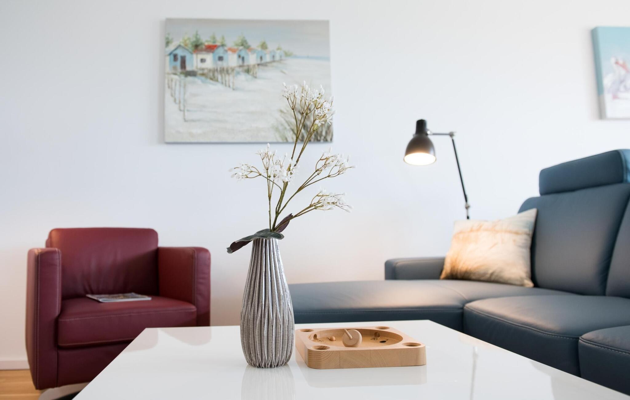 Det blir romantisk foran peisen i den koselige sofaen. Innendørs underholdning tilbys også av WLAN og Smart TV med Telekom Home Entertainment-program.
