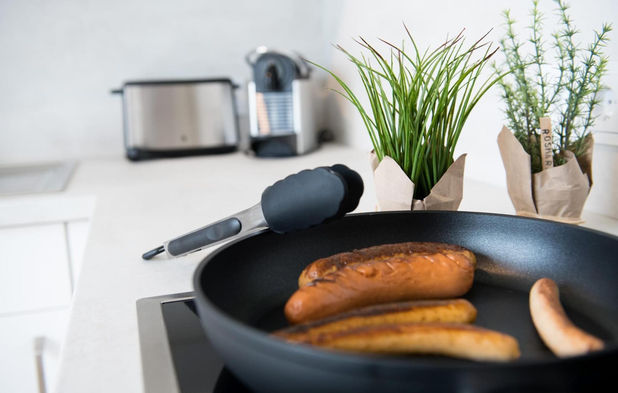 På ferie er det tid for kreativ matlaging, det fullt utstyrte spisekjøkkenet lar ingenting å ønske.