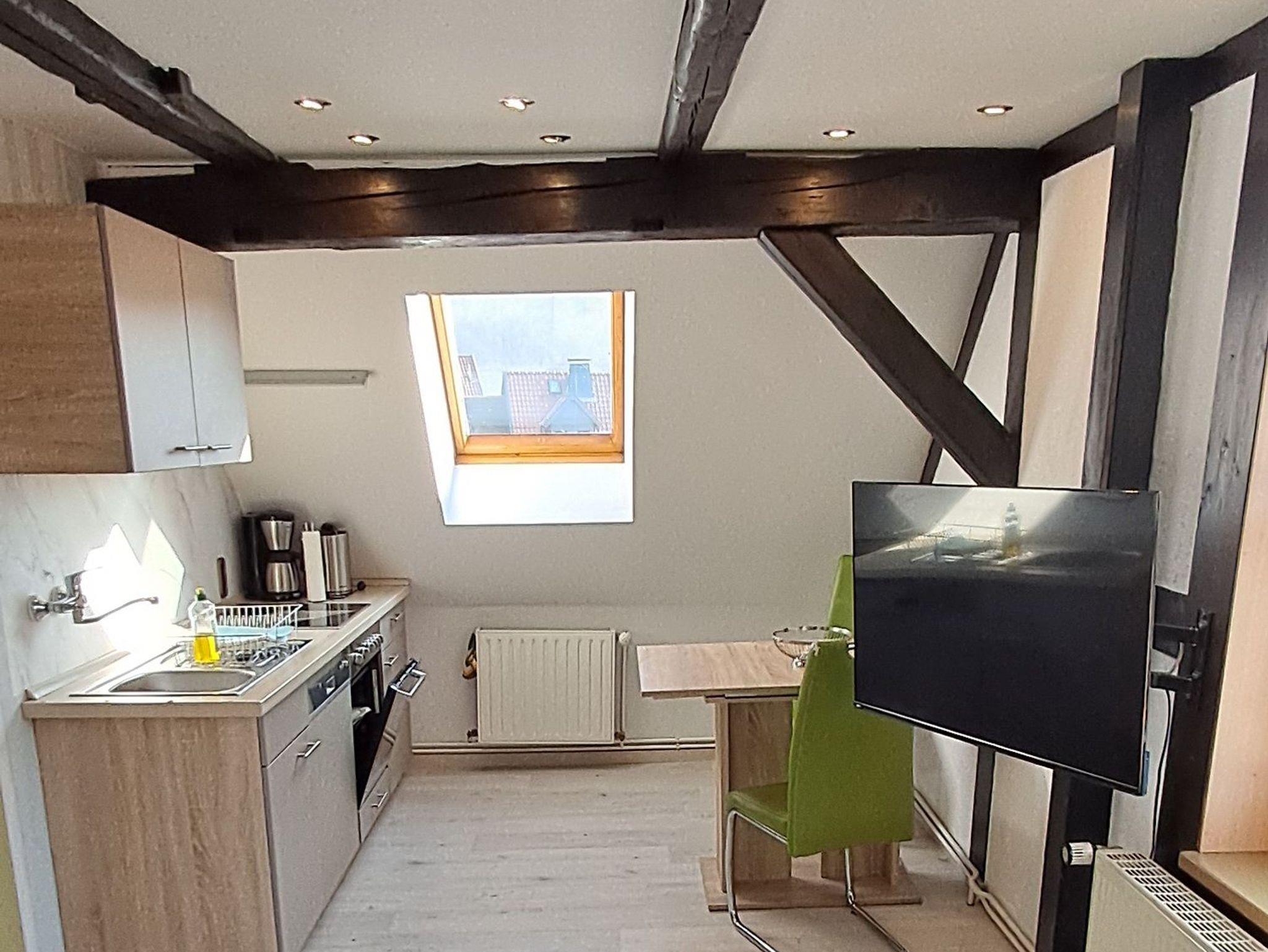 Ferienwohnung und ist über eine Treppe zu erreichen, Küche mit E-Herd,