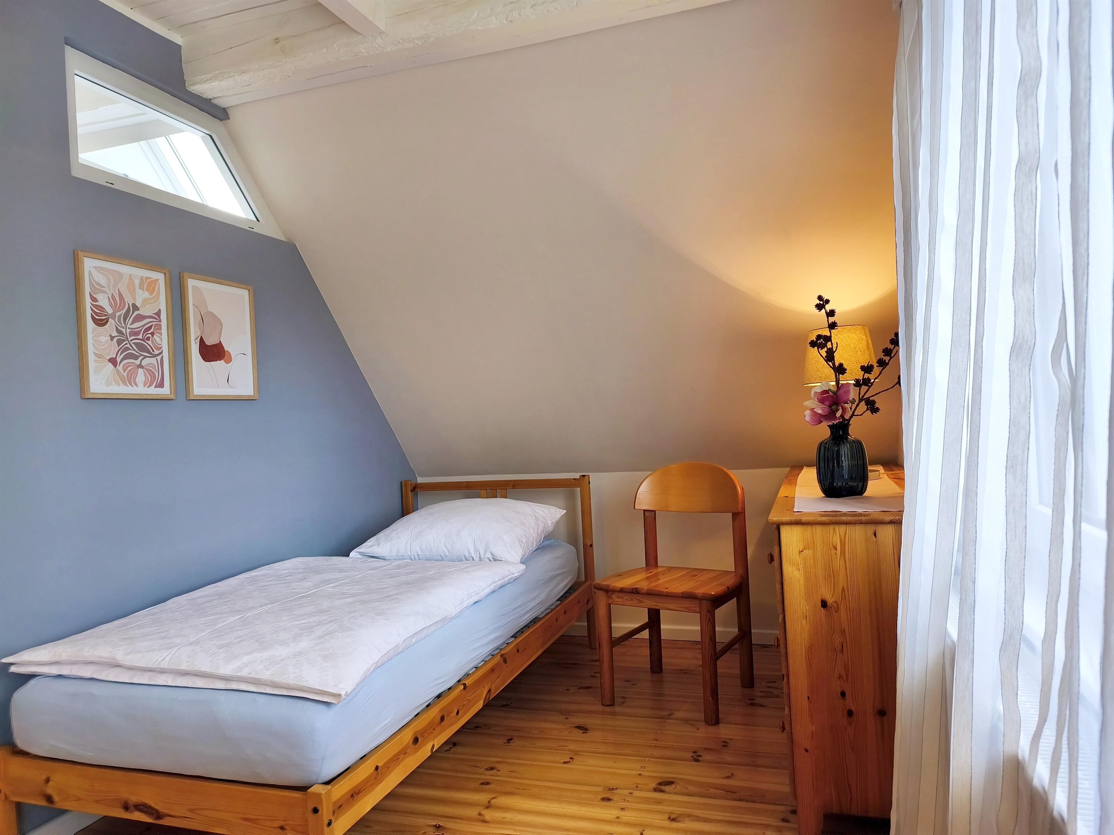 Das Haus umfasst auf zwei Etagen eine Wohnfläche von ca. 65 qm und ist für bis zu 3 Personen und 1 Baby geeignet. Eine zusätzliche Schlafmöglichkeit für ein weiteres Kind kann gerne angefragt werden.