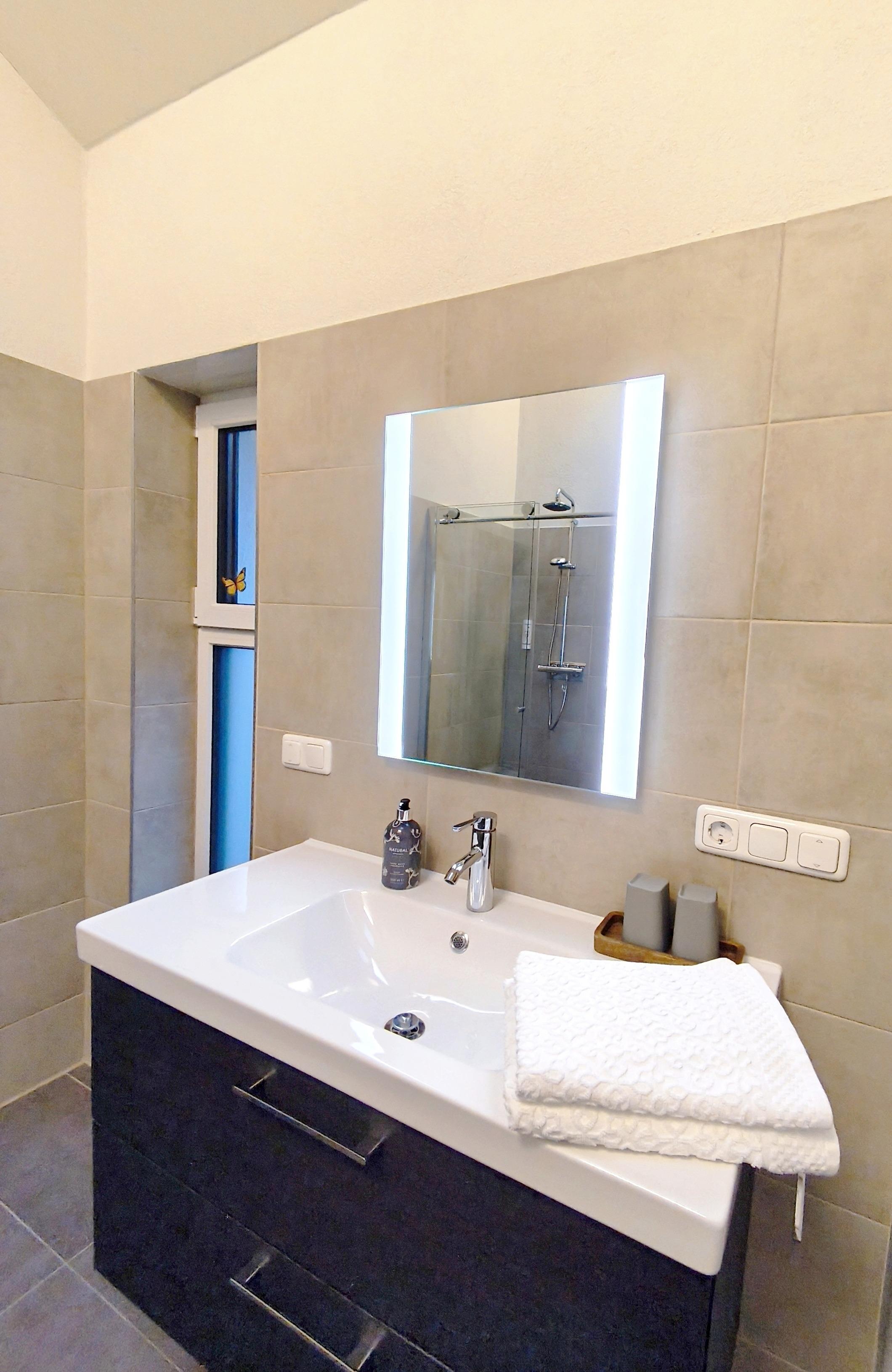 Sie sind in der Unterkunft natürlich komplett für sich, wir Gastgeber wohnen in der Doppelhaushälfte nebenan.