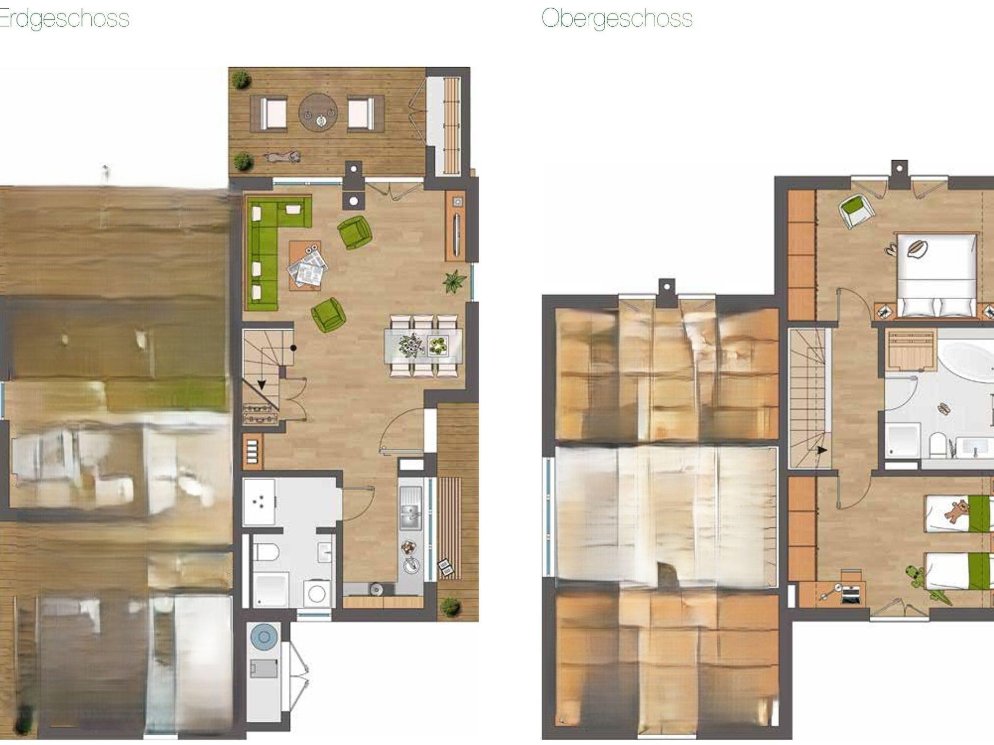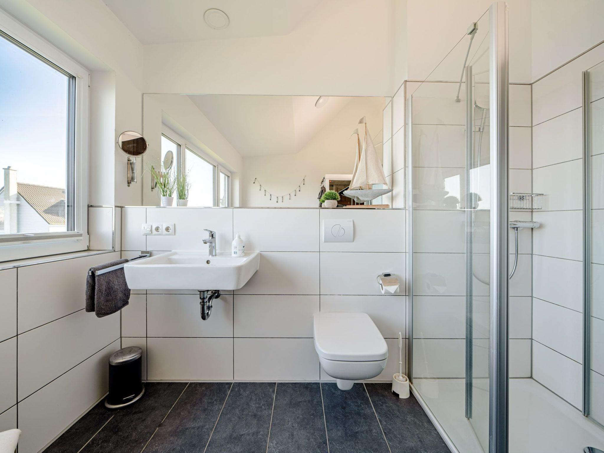 Two stylish bathrooms, one on each living level, ensure maximum comfort. The highlight of the first floor is the infrared sauna and the bathtub with whirlpool function and water view - here you can relax and unwind.