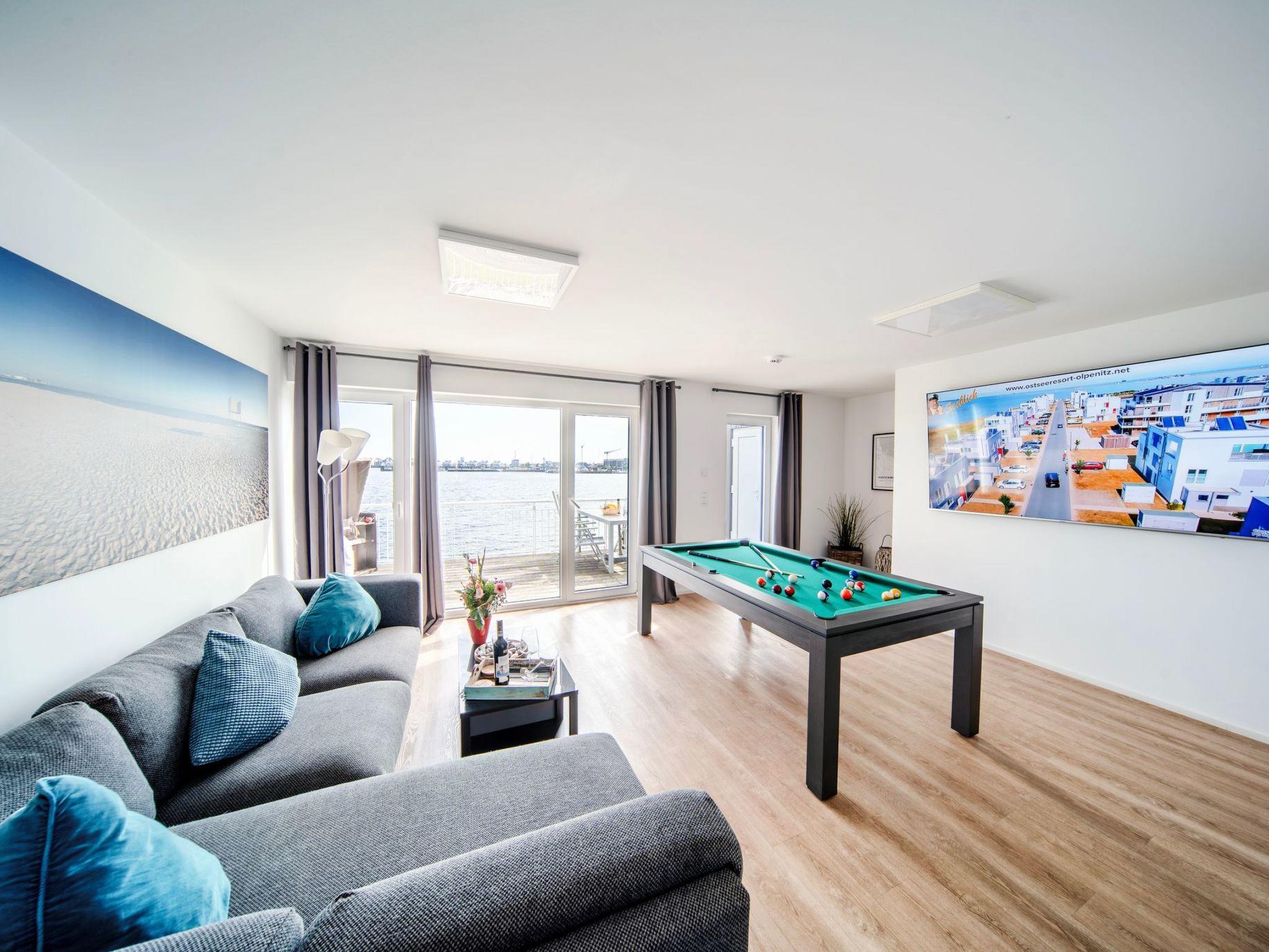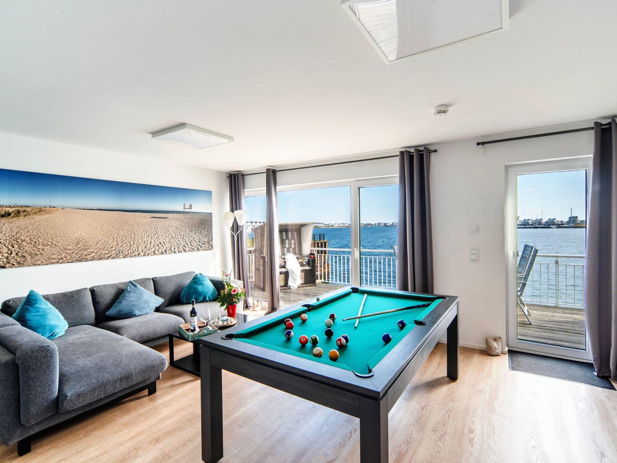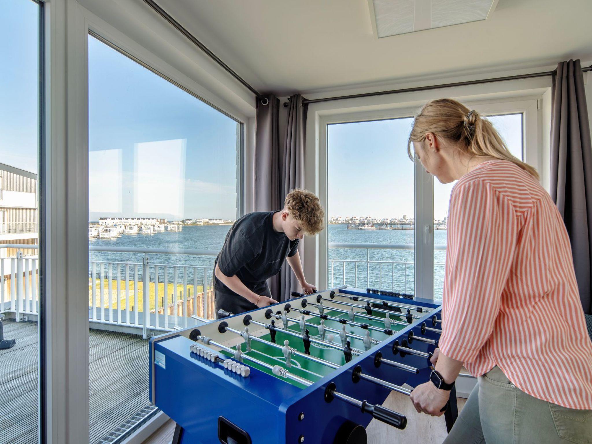 Enjoy your free time in our holiday home with numerous entertainment options. Relax in the Finnish sauna or experience exciting billiard matches. Stay active on holiday with the rowing machine and table football. Entertainment is provided by an incredible 82-inch television in the living room and televisions in both bedrooms. Use the free Wi-Fi internet connection to stay connected or relax with your favourite series on Netflix or Telekom Entertain. A massage chair and a fireplace provide additional cosiness.