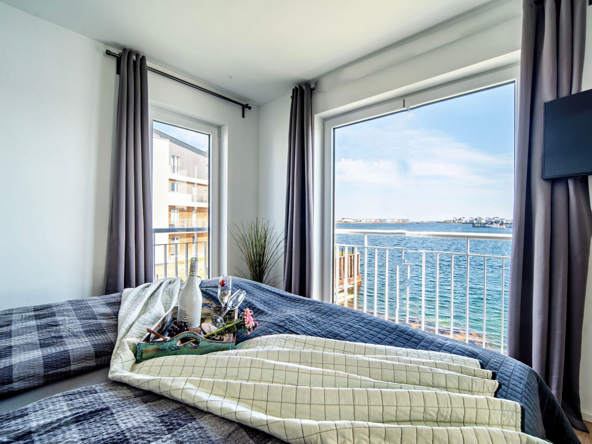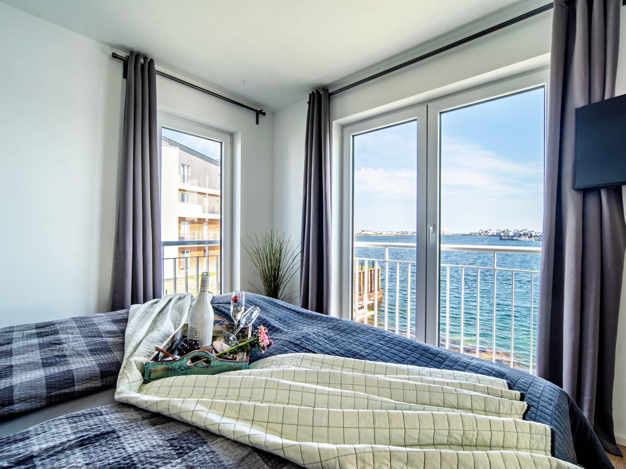 With a breathtaking view of the harbour cinema at the front and the Schlei at the back, you can enjoy the sight of the rising sun in the morning and the setting sun in the evening from our spacious terraces. Immerse yourself in the wonderful atmosphere and let yourself be enchanted by the beauty of nature.