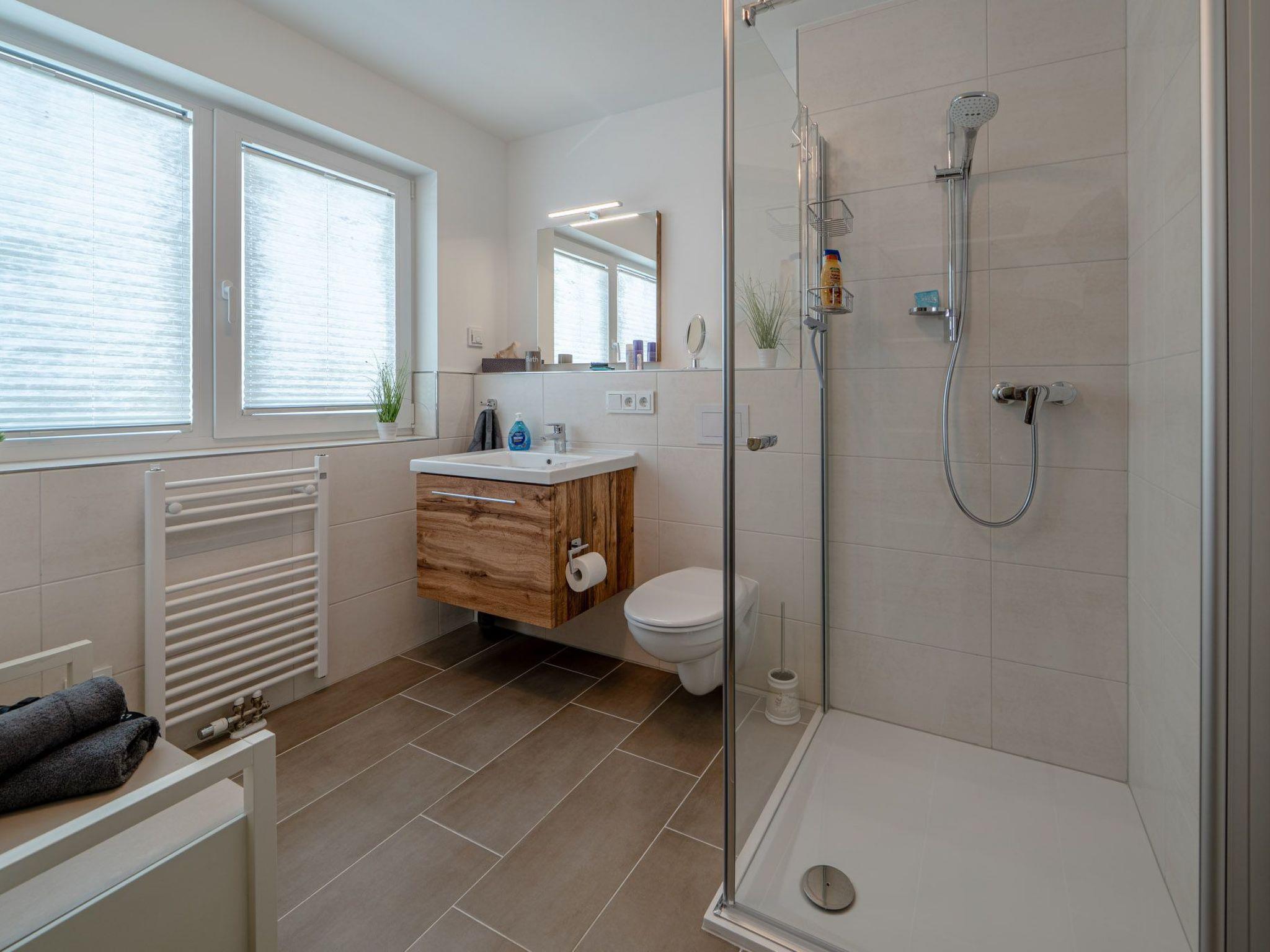 Also on the first floor is a modern wellness bathroom with shower and Finnish sauna cabin - with a view of the water, of course. There is also a guest WC on the ground floor. The entire Schleivilla Hafenblick by Seeblick Ferien ORO is equipped with underfloor heating, guaranteeing comfort and warmth all year round.