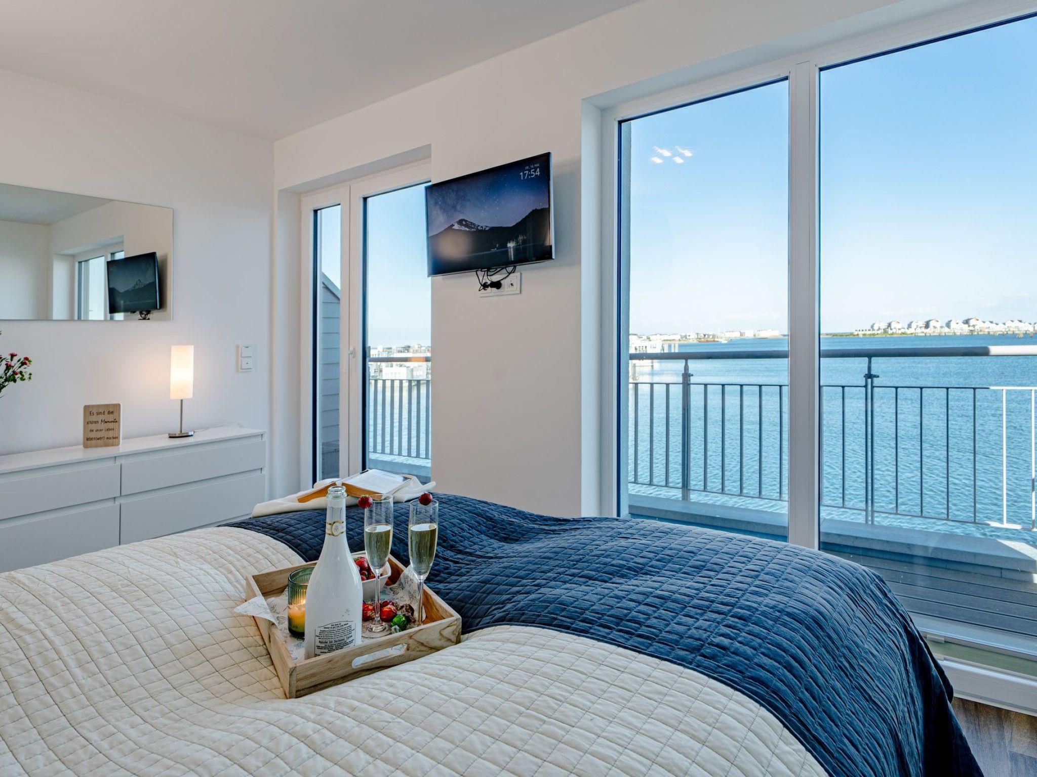The terraces of this dreamlike accommodation offer sun all day long - from sunrise to sunset. Each floor has an attractive outdoor area, with the highlight being the 360° roof terrace with sensational panoramic views. From here you can enjoy the view of the marina, the Baltic Sea, the Schleimündung estuary, the Schlei Baltic Sea fjord and the surrounding nature reserve.