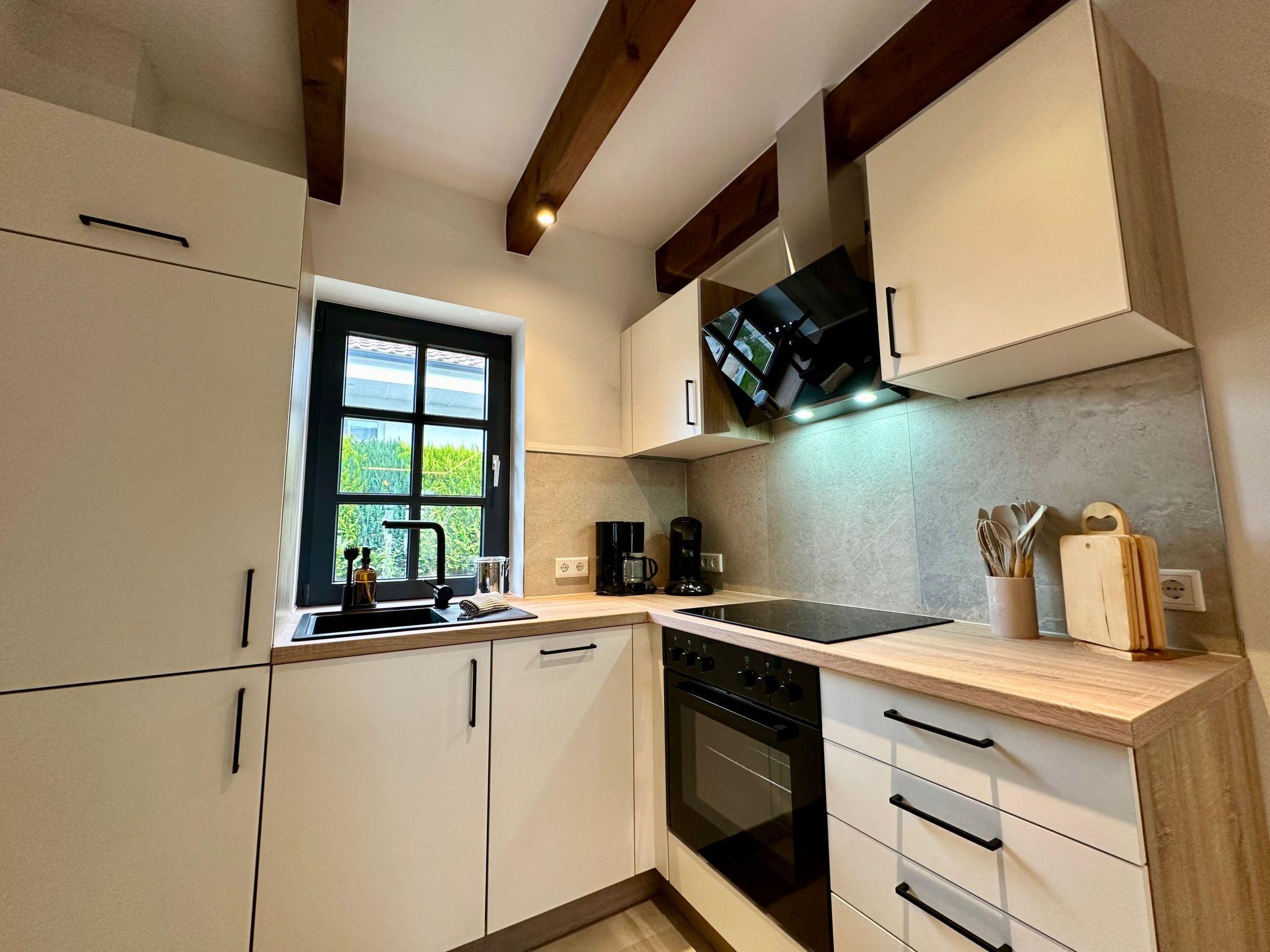 Our (newly renovated) holiday home has space for up to four people - your four-legged friends are also very welcome here. The absolute highlights of our small house are above all the wonderful atmosphere thanks to lots of indirect lighting, the south-west facing terrace where you can enjoy the peace and quiet and the sun into the evening hours, as well as the adjoining small garden and of course the magnificent fireplace in the living and dining area, which ensures warm and cosy hours even on cold days.