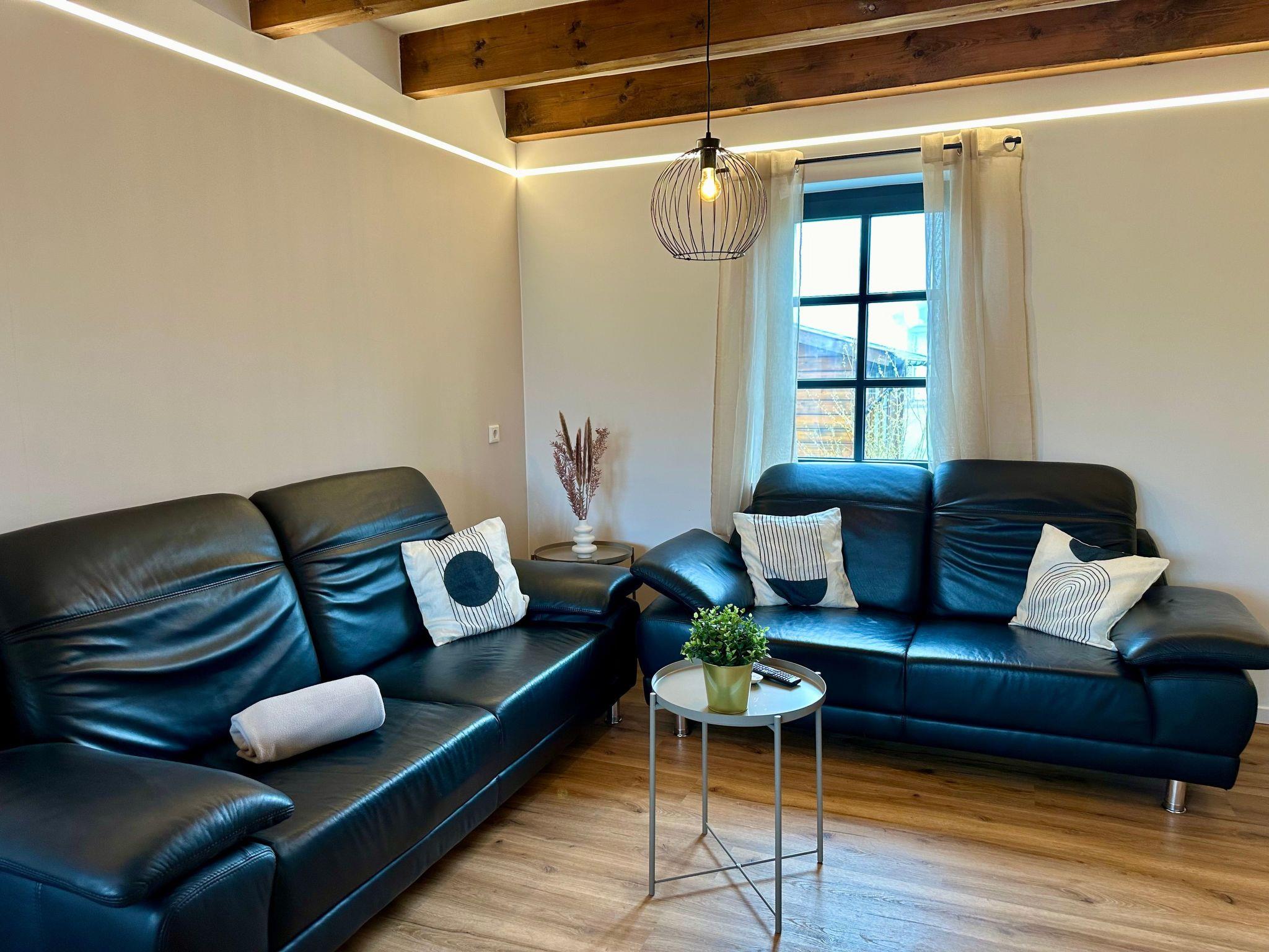 - Living room with SmartTV and high-quality leather sofas