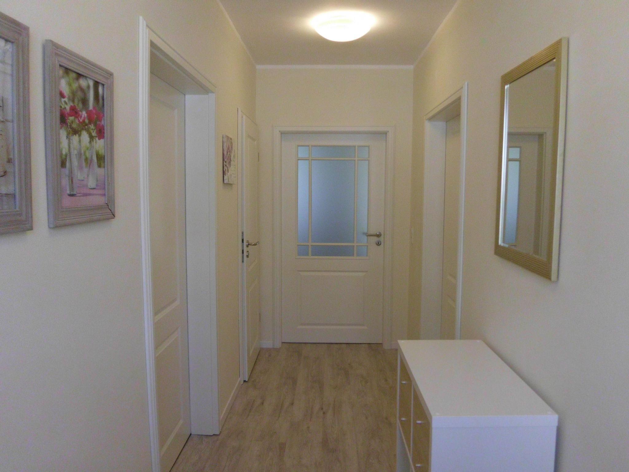 The holiday apartment is in Kappeln in the Mehlby area on a fenced site. It is a ten-minute walk from the centre. The apartment has a big bedroom with a double bed (180 x 200cm) with very good foam mattresses and a big wardrobe. The very cosy living room has an additional sofa bed, an armchair and a flatscreen TV with a DVD player. Next to it there is the dining space for meals and for sitting together and playing games. The kitchen is amply equipped with a fridge and freezer compartment, an electric stove with an oven, a dishwasher, a microwave, a coffee machine, kettle and plenty of crockery, glasses, cutlery and cooking utensils. The generous shower room with a walk-in shower is functionally equipped, including a wall cabinet with a mirror and a hairdryer.