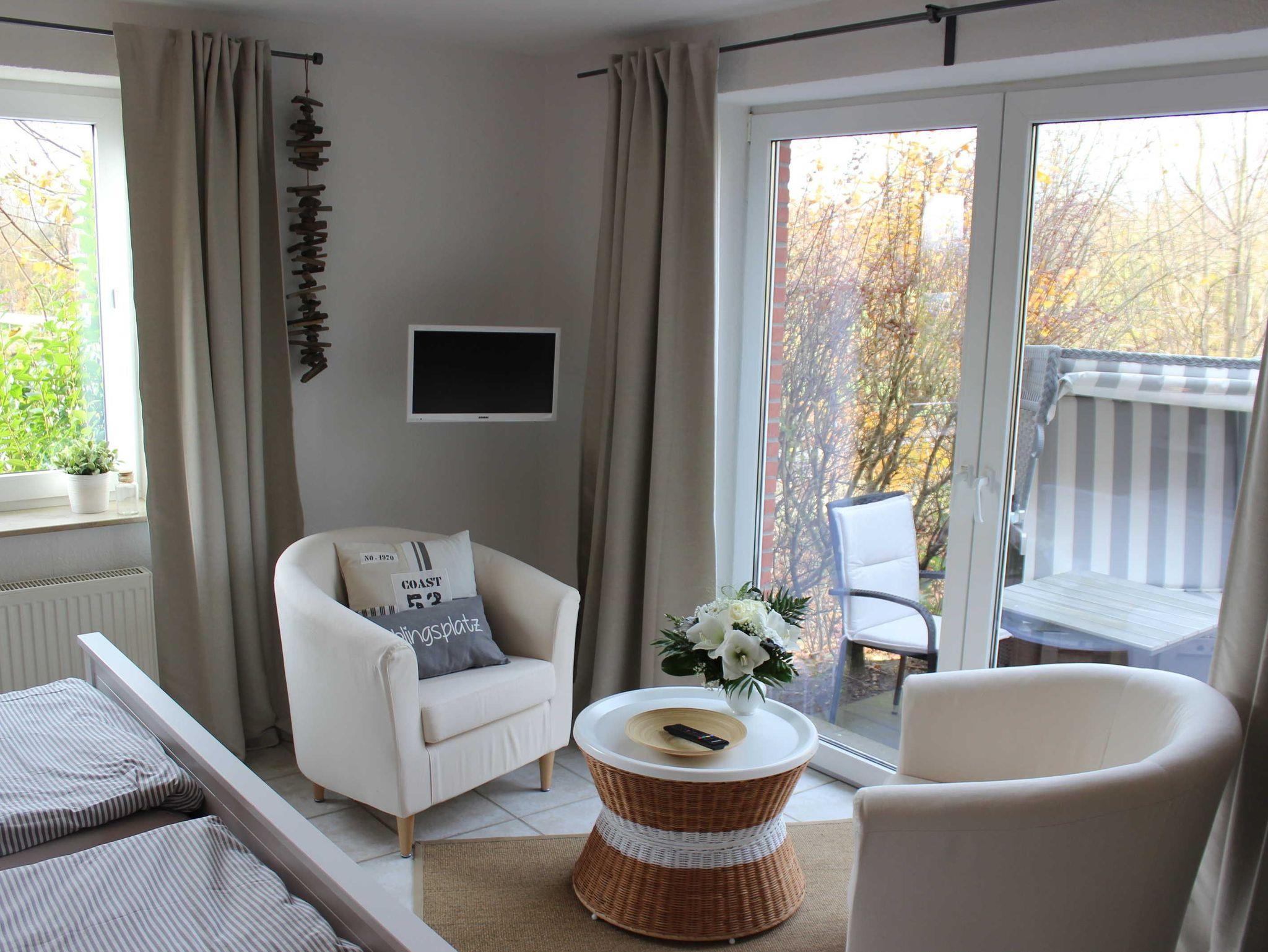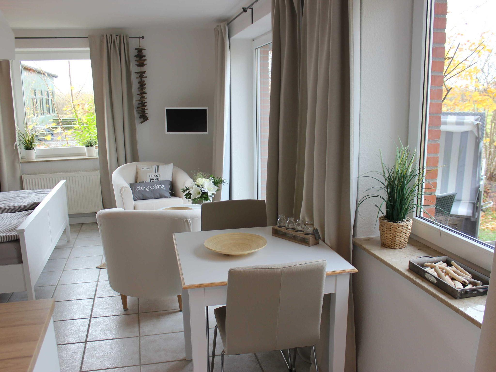 Das ebenerdige Ferienappartement Matrosennest bietet mit seinem modern eingerichteten lichtdurchfluteten Wohn- und Schlafraum Platz für 2 Personen. Das großzügige Doppelbett ist für Ihren erholsamen Schlaf