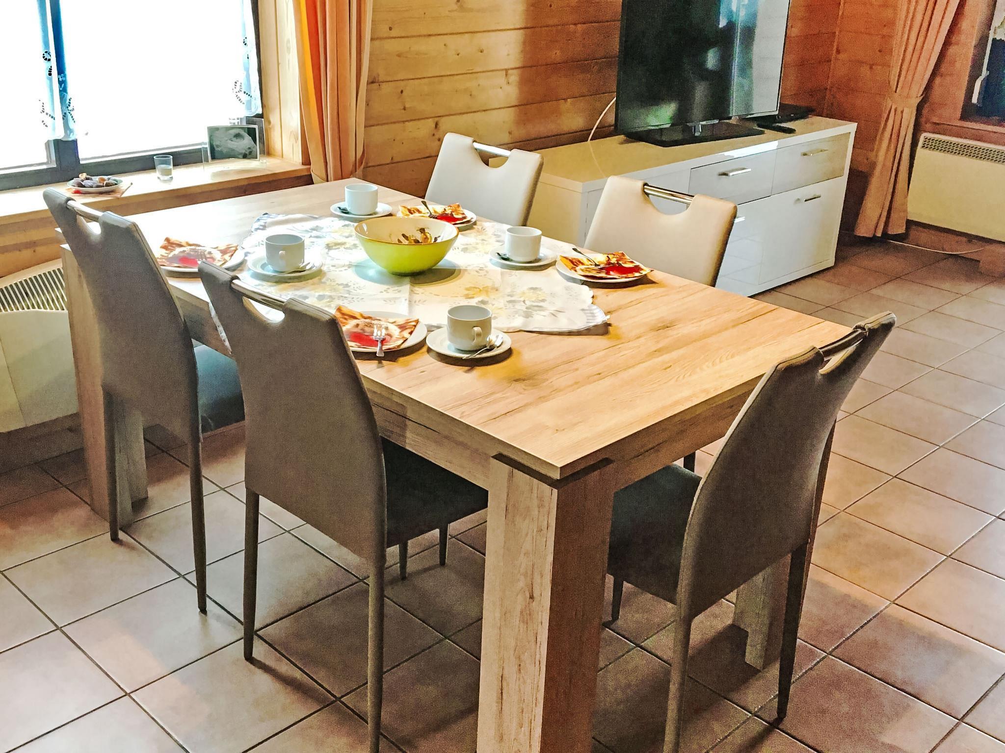 3-room semi-detached house 78 m2 on 2 levels, on the ground floor. Living/dining room with 1 sofabed and satellite TV (flat screen). Exit to the terrace. Kitchenette (oven, dishwasher, microwave, electric coffee machine). Sep. WC. Top floor: 2 rooms with sloping ceilings, each room with 2 beds. Shower/WC. Terrace 8 m2. Terrace furniture, barbecue, box-room. Facilities: children's high chair. Please note: non-smoking house.