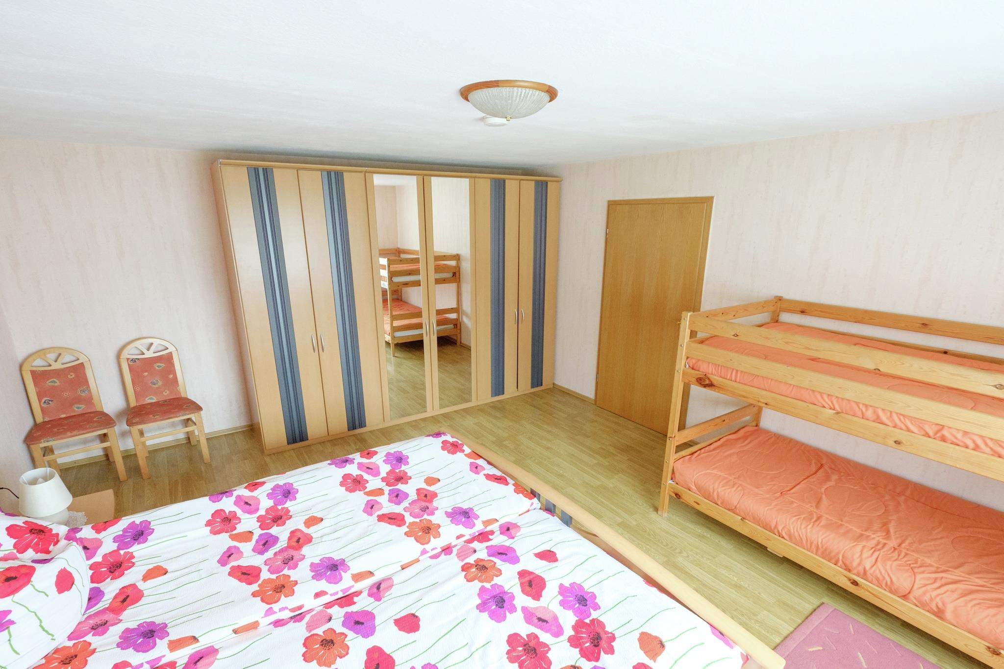 Denne sjarmerende leiligheten i 1. etasje i Hasselfelde tilbyr et fredelig tilfluktssted kun 500 meter fra sentrum. Ideell for par eller små familier, det er perfekt plassert for å utforske Harz-regionens høydepunkter. Nærliggende attraksjoner inkluderer Pullman City Harz med ville vesten-tema, den dramatiske Devil's Wall-klippeformasjonen og det historiske Regenstein-slottet. For naturelskere tilbyr Rappbode-demningen og Harzköhlerei Stemberghaus-museet naturskjønn utsikt og kulturell innsikt. Leiligheten har to komfortable soverom, en koselig stue/spisestue med satellitt-TV, DVD-spiller og CD-spiller, og et fullt utstyrt kjøkken med keramisk komfyr, stekeovn, mikrobølgeovn og filterkaffemaskin. En privat terrasse og inngjerdet hage med kullgrill, fluktstoler og markise gir utendørs avslapning. Ytterligere fasiliteter inkluderer sentral elektrisk oppvarming, barneseng, barnestol, felles vaskemaskin og sykkelbod. Omgitt av skogsstier og bare 400 meter fra lokale restauranter, er beliggenheten ideell for eventyr året rundt. Nyt regional mat på Restaurant Lotus, solid tysk mat på Restaurant Zur Krone, eller grillspesialiteter på Köhlerhütte Gut Brand.
