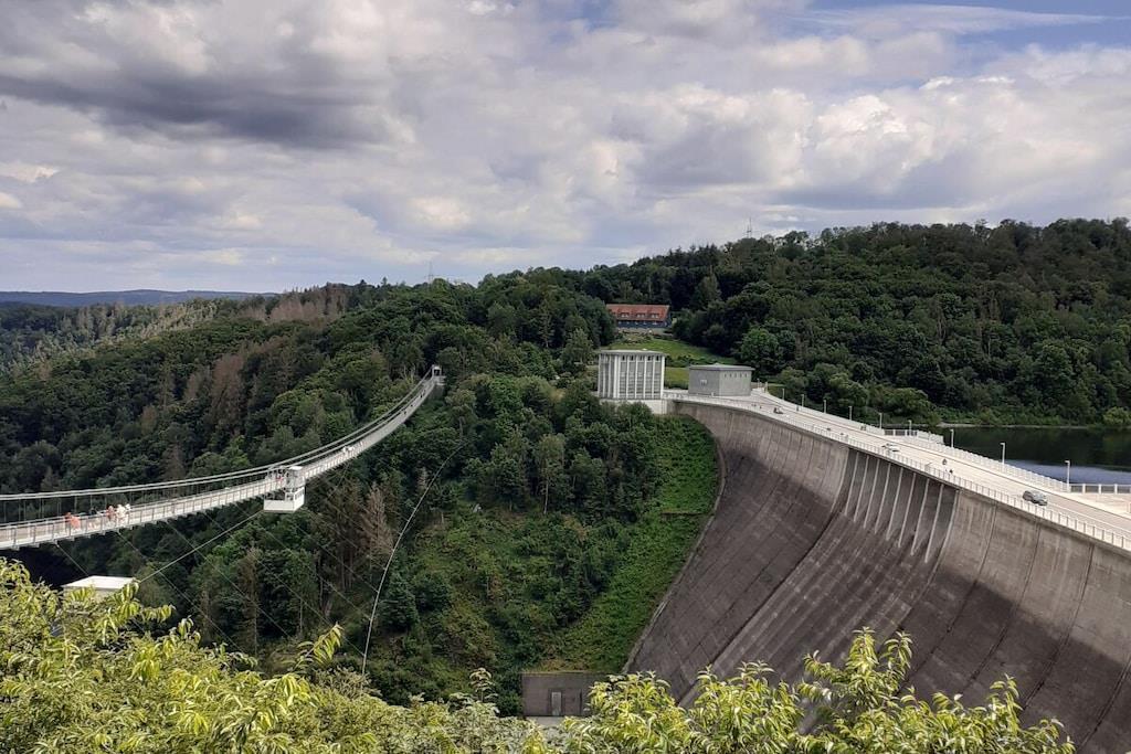 Feriehuset Harzbiene er koselig og komfortabelt innredet. Med en størrelse på 66 kvm har huset nok plass til 4 til 5 voksne og et lite barn. I første etasje finner du en romslig stue, åpent, fullt utstyrt kjøkken, separat gjestetoalett og garderobe med speil. I øverste etasje er det soverom med dobbeltseng, soverom med to enkeltsenger og bad med dusj, toalett og stellebord. På uteområdet er det sydvendt terrasse, lekeplass med fotballbane, grillhytter og felles badstue tilgjengelig for våre gjester.